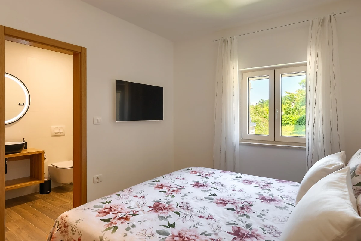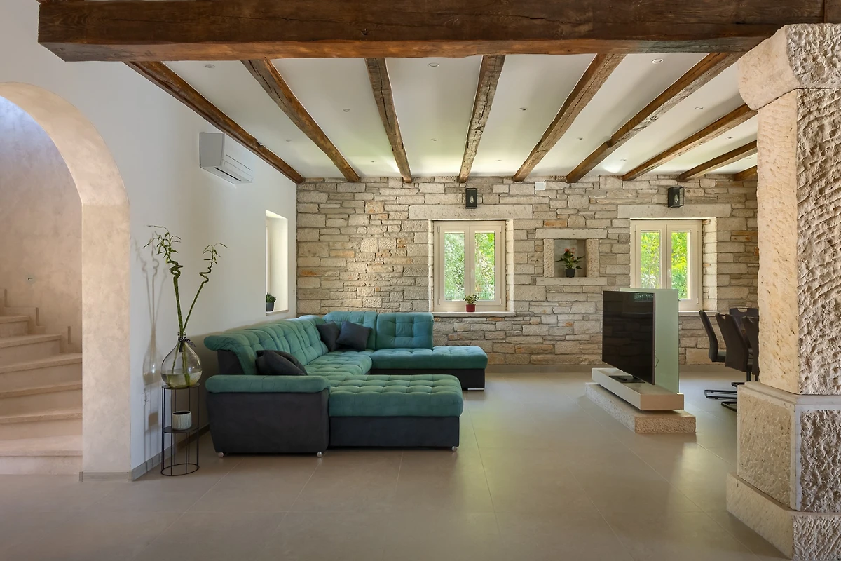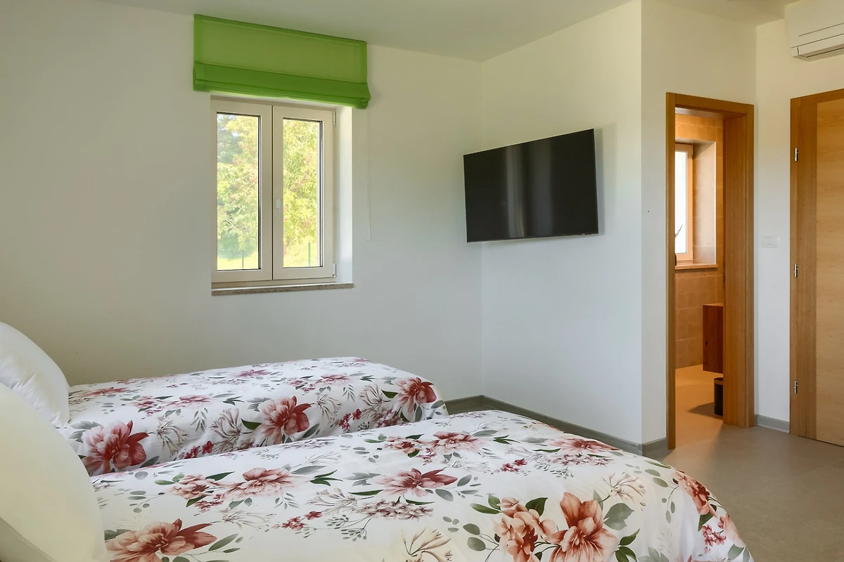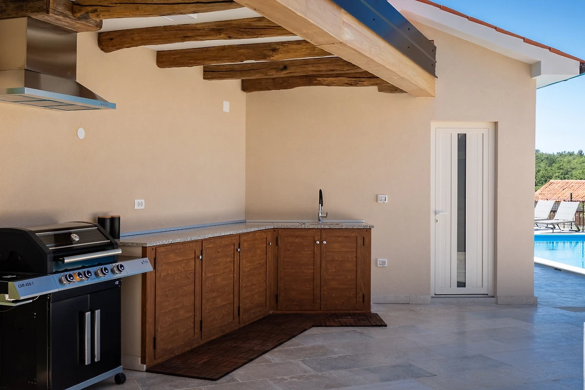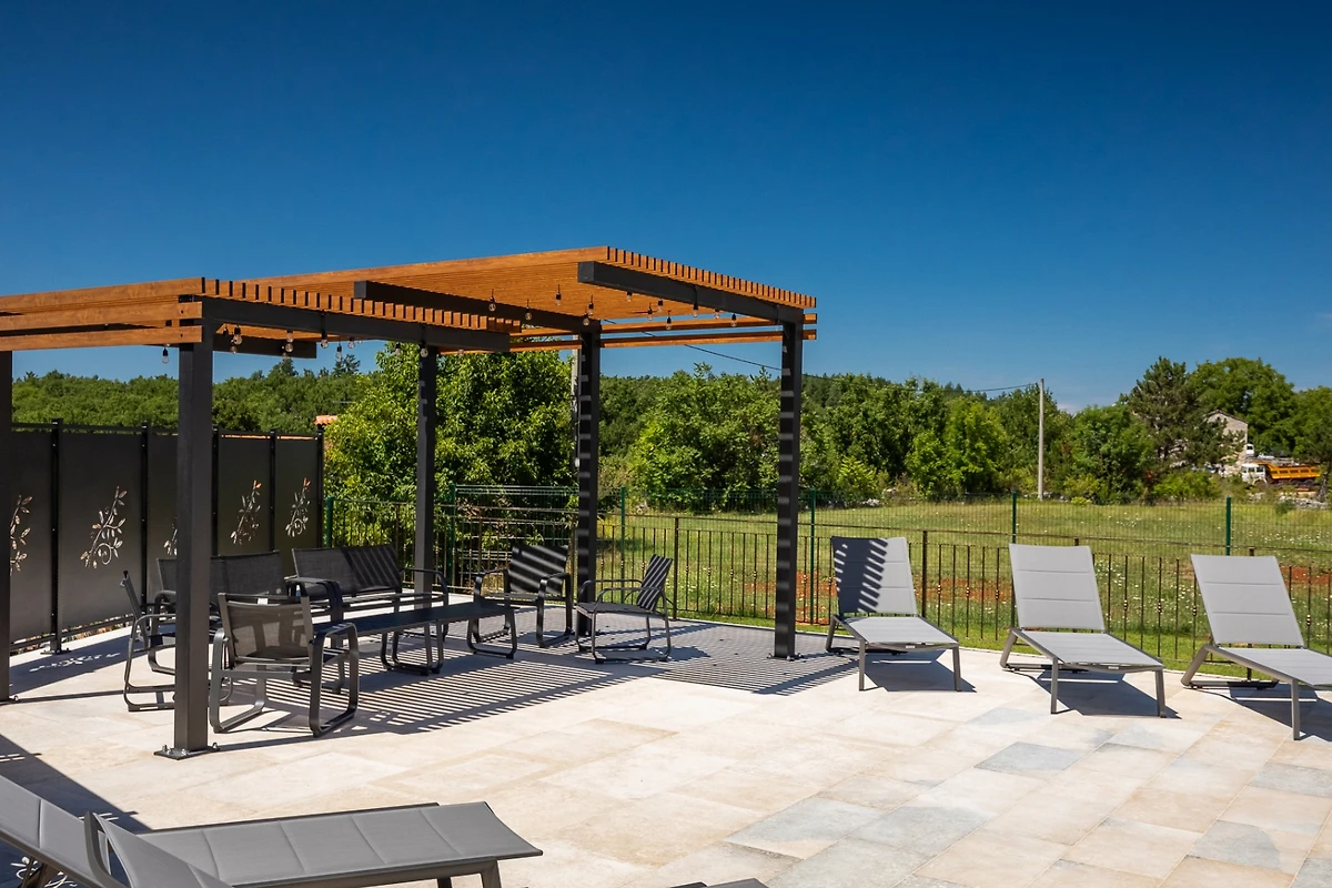 La lussuosa villa Kave si trova nel sereno villaggio di Martinčići vicino a Grožnjan, nel nord-ovest dell'Istria. Con una superficie interna di 299 m², la villa dispone di 6 camere da letto e 7 bagni, in grado di ospitare comodamente 14 persone. È ideale per vacanze in famiglia e con gli amici. L'elegante interno della villa vanta un bar privato e il vasto giardino offre vari punti per rilassarsi con i propri cari. Godetevi la vista mentre vi rilassate in piscina riscaldata o nella vasca idromassaggio e, grazie alla cucina estiva, potrete preparare specialità nell'aria mediterranea profumata. Gli ospiti hanno accesso a un parcheggio privato per un massimo di 6 veicoli.