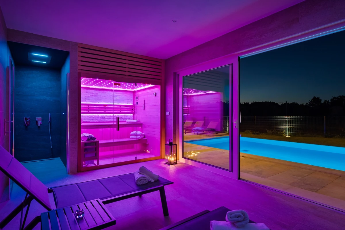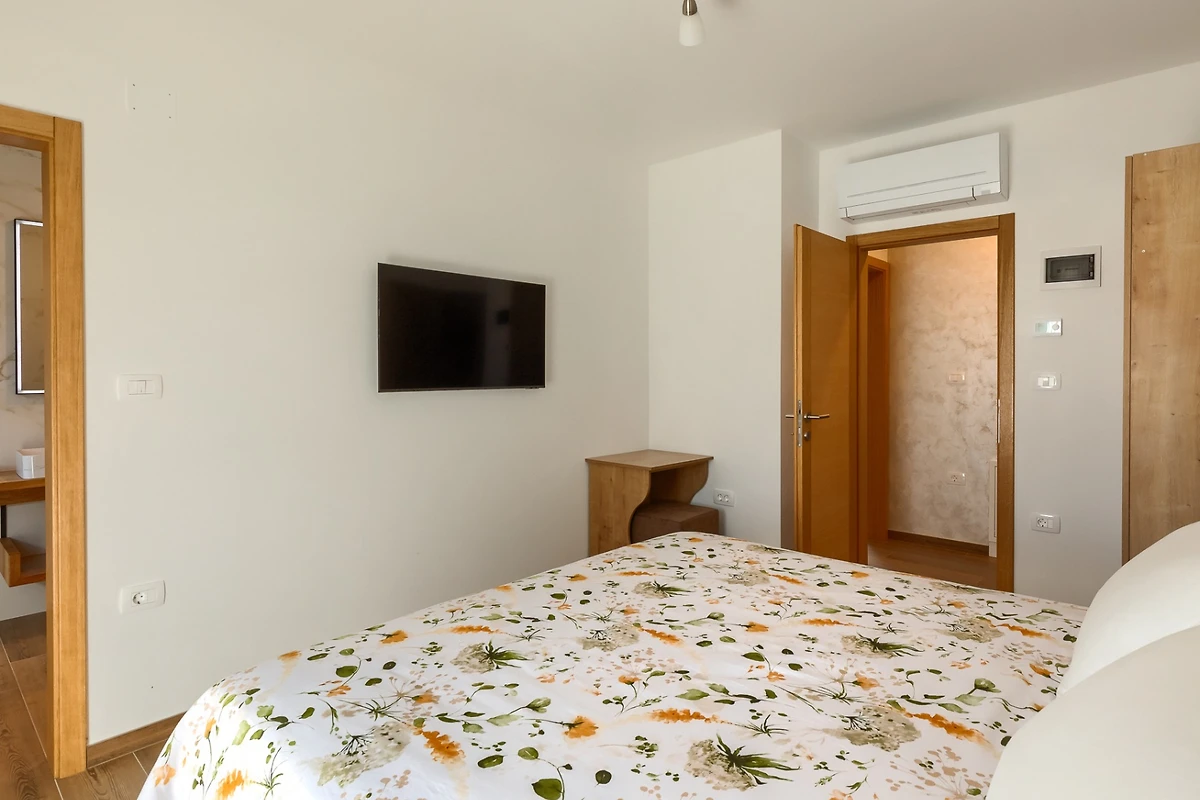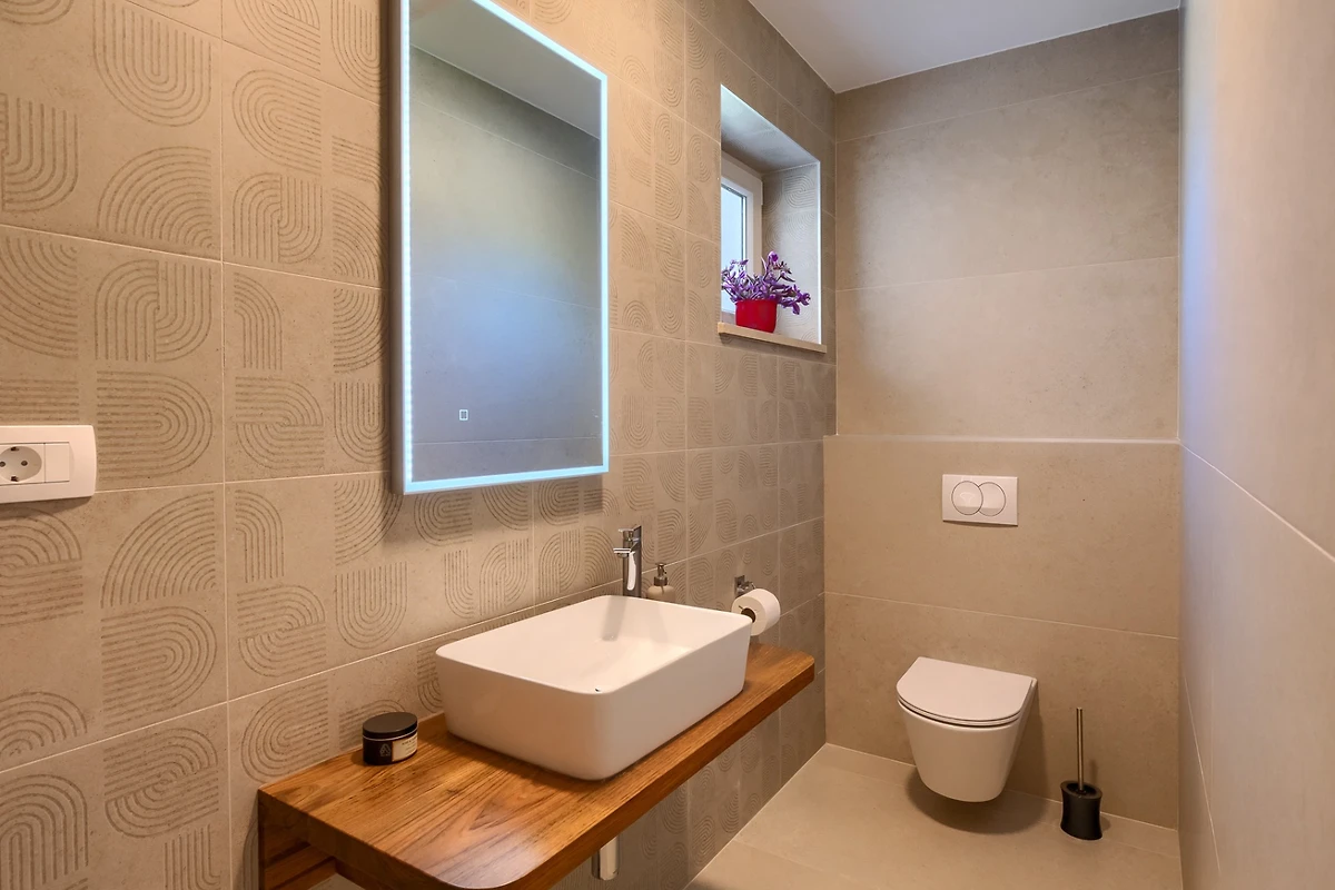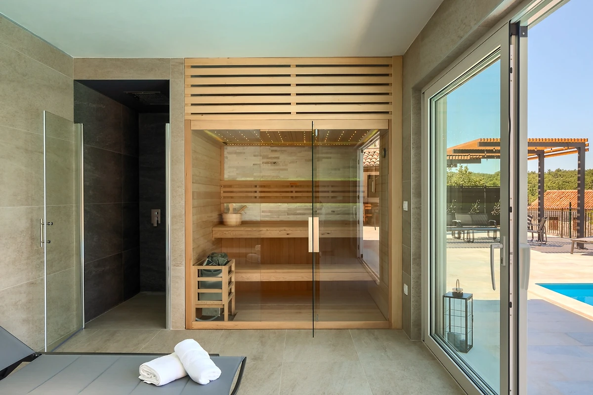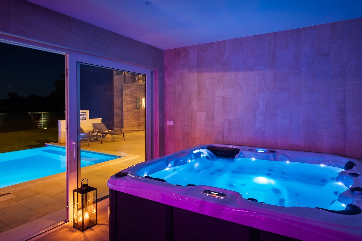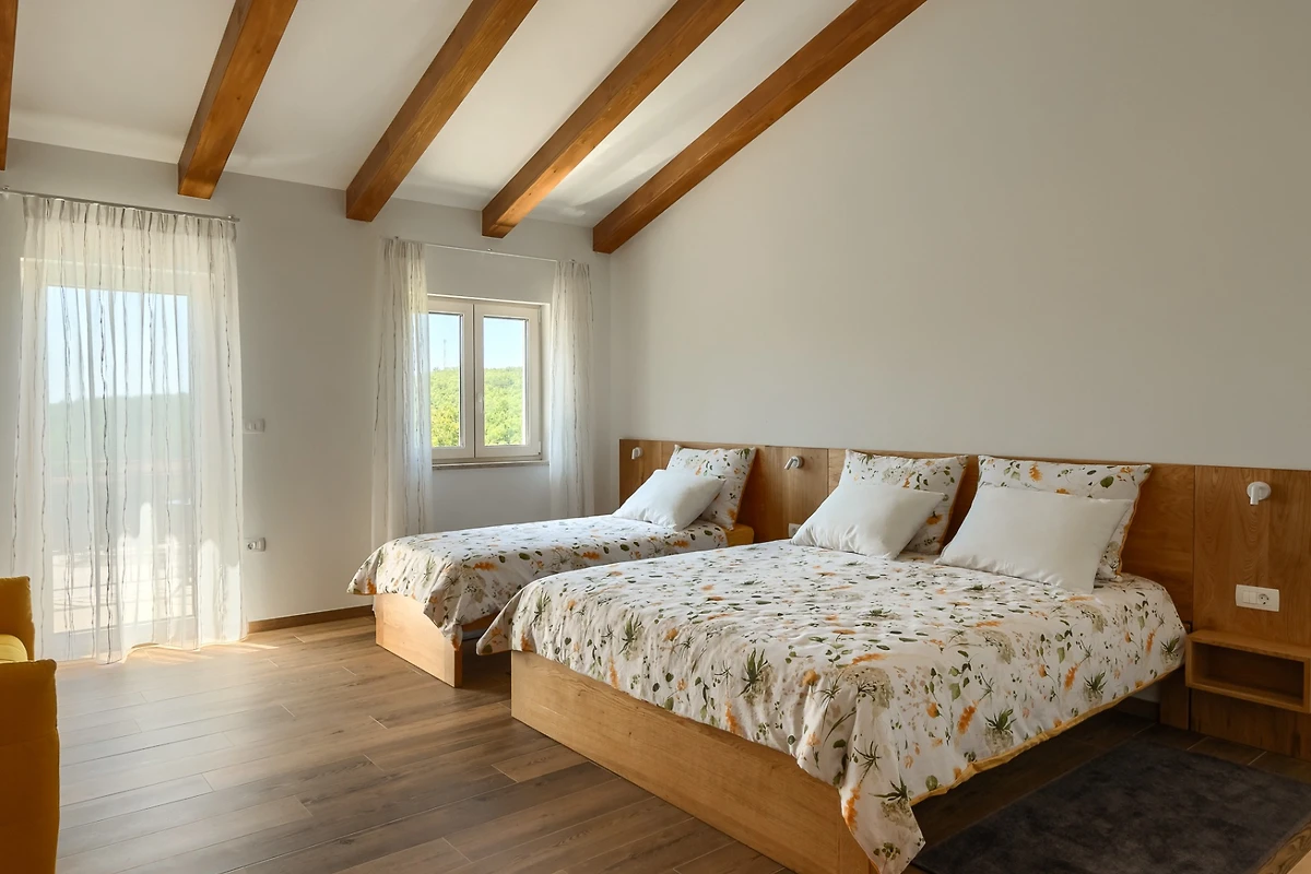 La lussuosa villa Kave si trova nel sereno villaggio di Martinčići vicino a Grožnjan, nel nord-ovest dell'Istria. Con una superficie interna di 299 m², la villa dispone di 6 camere da letto e 7 bagni, in grado di ospitare comodamente 14 persone. È ideale per vacanze in famiglia e con gli amici. L'elegante interno della villa vanta un bar privato e il vasto giardino offre vari punti per rilassarsi con i propri cari. Godetevi la vista mentre vi rilassate in piscina riscaldata o nella vasca idromassaggio e, grazie alla cucina estiva, potrete preparare specialità nell'aria mediterranea profumata. Gli ospiti hanno accesso a un parcheggio privato per un massimo di 6 veicoli.