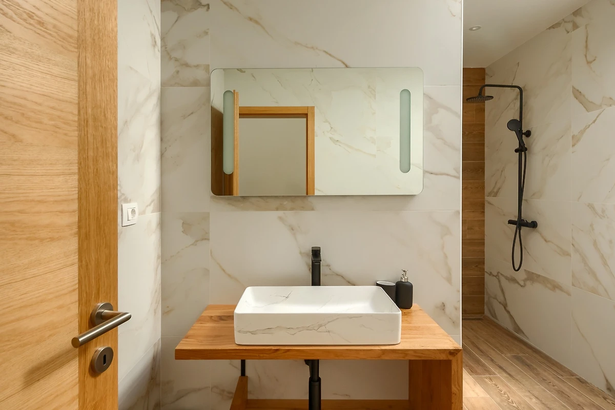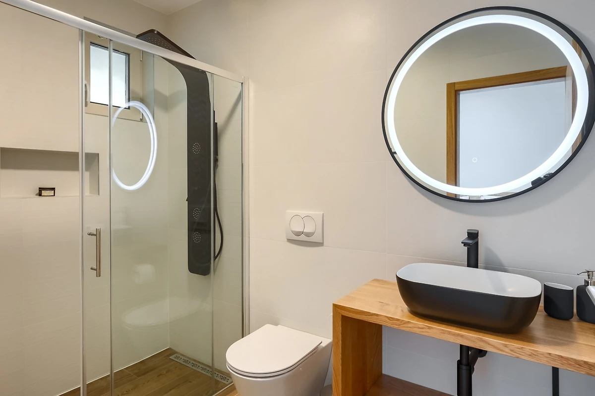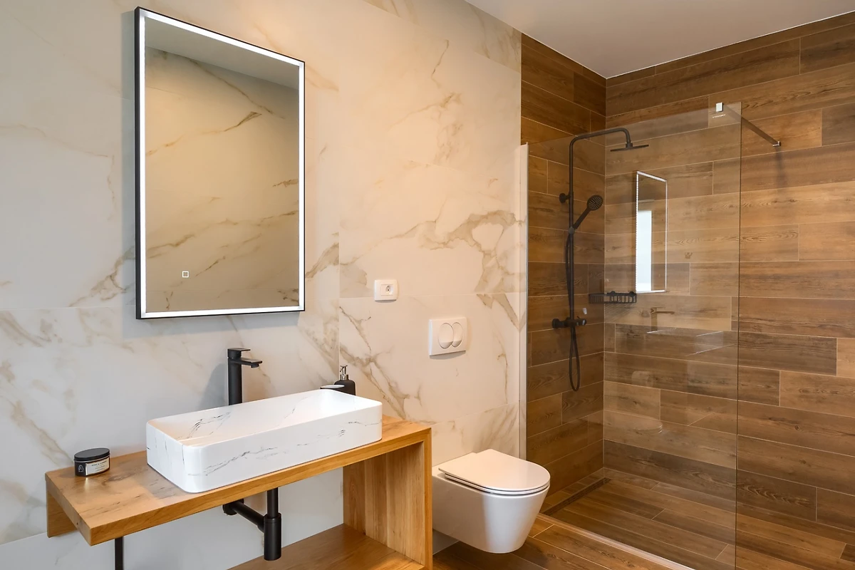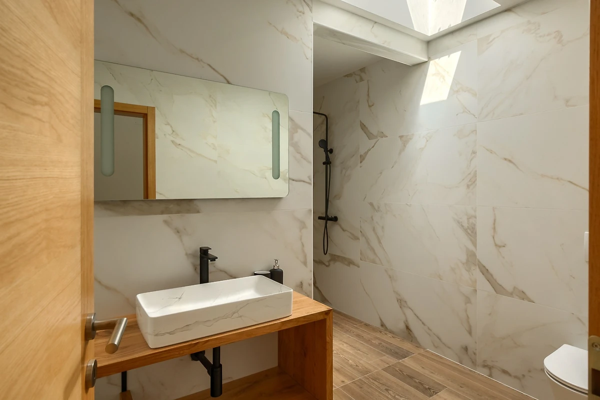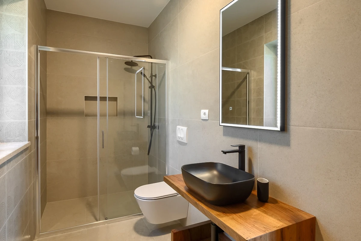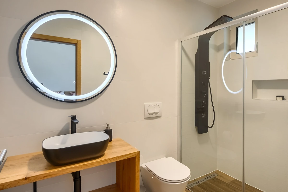 Al piano terra c'è un'area living open space. C'è un soggiorno, una sala da pranzo e un bar, mentre la cucina si trova nella stanza adiacente. La deliziosa unione di minimalismo moderno e stile mediterraneo tradizionale crea un'atmosfera incantevole. Grazie ai colori chiari, l'area sembra spaziosa. I mobili sono di altissima qualità. Vedrete elementi in pietra e legno, come travi in legno nel soffitto. Un ampio divano domina il soggiorno, perfetto per una serata cinematografica di gruppo con la smart TV. Il riscaldamento a pavimento è disponibile in ogni stanza della villa, amplificando il vostro piacere. L'unica tavola da pranzo per 14 persone delizierà tutti gli ospiti e il camino aggiunge un'atmosfera speciale. Nell'angolo adiacente del piano terra c'è un bar con un frigorifero per le bevande, un lavandino e un bancone con sgabelli alti - dove avrà inizio ogni festa nella villa e dove potrete mettere alla prova le vostre capacità di barista. La cucina contemporanea con piano a induzione è completamente arredata con stoviglie e elettrodomestici.