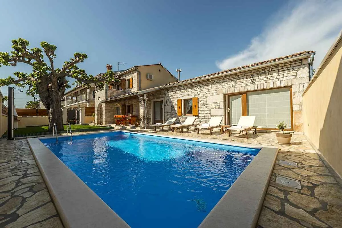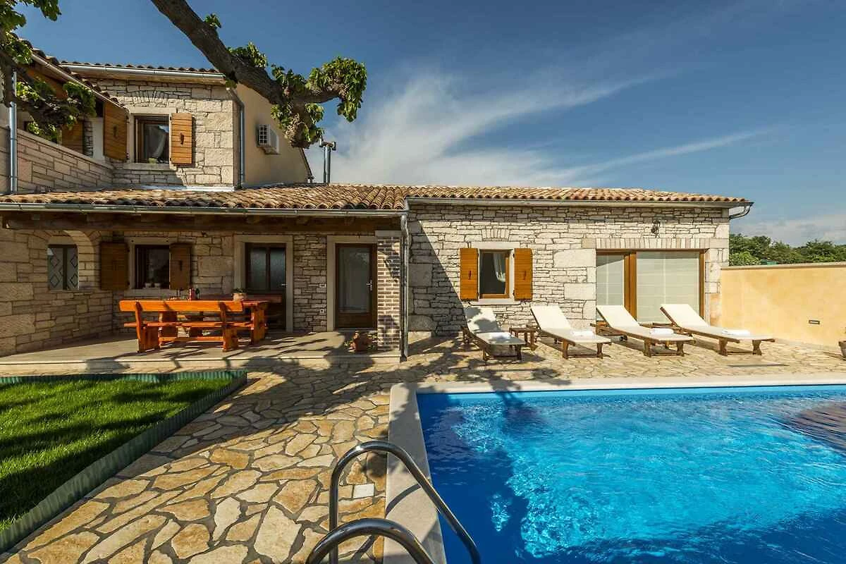Sveti Lovreč. La villa si trova su un terreno recintato con prato e alberi, delimitato da una recinzione. Il proprietario non abita nella casa né sulla proprietà. L’accesso avviene tramite una strada secondaria. Parcheggio (per 4 auto) sulla proprietà.