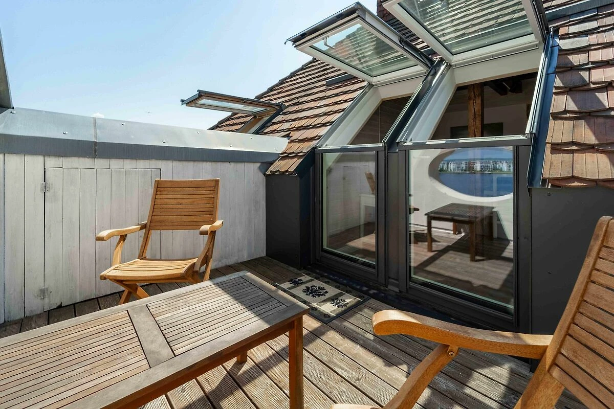 Bella moderna appartamento con un fascino accogliente e un originale spazio esterno. Situato a pochi passi dal centro della città al lago. Proprietari molto cordiali. Ampio spazio per angoli lettura. TV moderna. Bel bagno.
