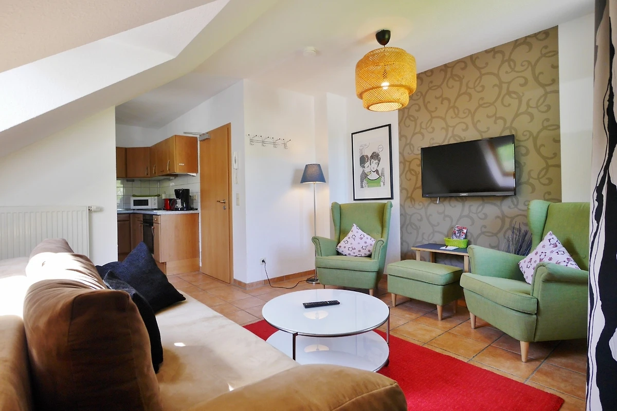 L'appartamento moderno è compatto ed arredato in modo funzionale. Troverai tutto ciò che ci si aspetta da un moderno appartamento per vacanze, ma senza fronzoli superflui. Dal soggiorno puoi guardare i tetti di Alt-Willingen.