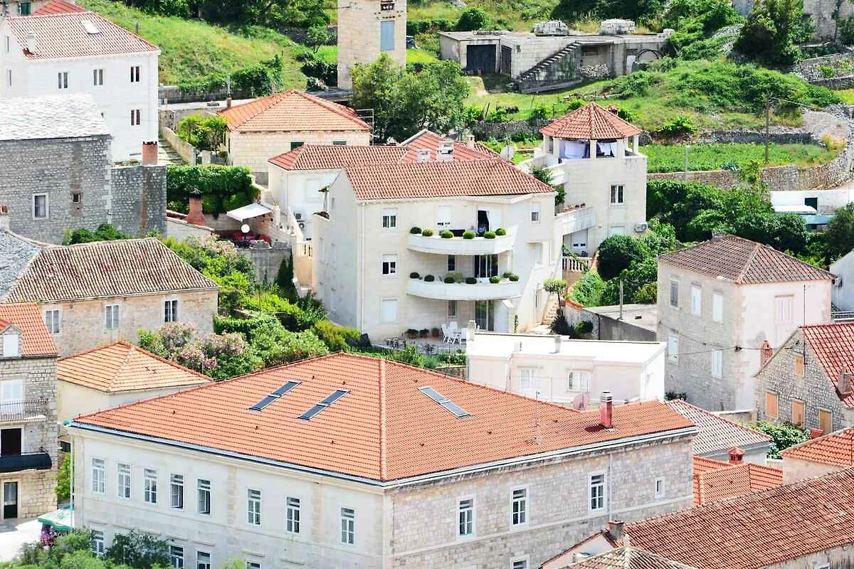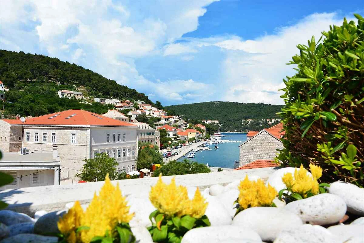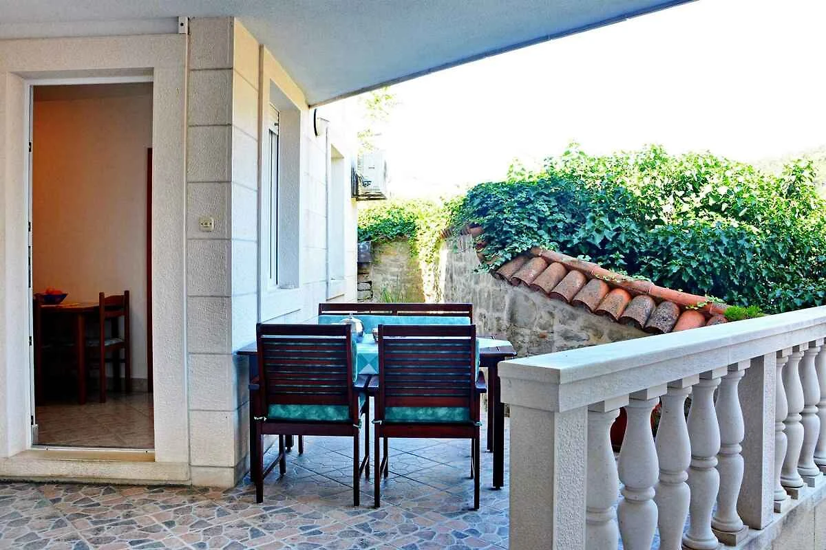 Pučišća, frazione Spalato Dalmazia. L' appartamento vacanze si trova in una trama del giardino chiuso con prato e fiori, delimitata da una recinzione. situato su un'isola L'accesso avviene vicino a una strada secondaria. Parcheggio sulla proprietà.