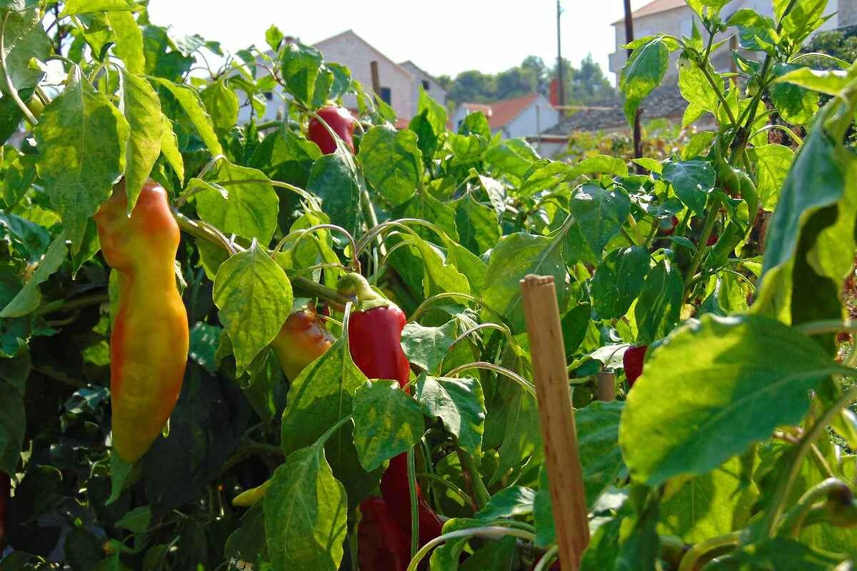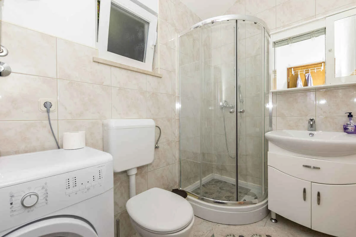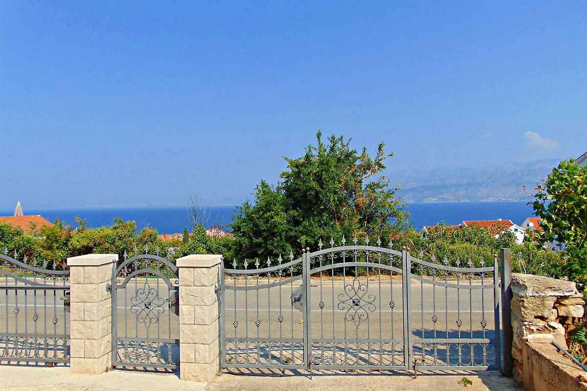 Postira. La casa vacanza si trova in una trama del giardino chiuso, grande 1000 mq con fiori, arbusti e alberi, delimitata da una recinzione. Il proprietario non abita nella casa o nella proprietá. Vista: mare, zona verde e giardino L'accesso avviene direttamente dalla strada principale (asfaltata). Parcheggio sulla strada davanti alla casa.