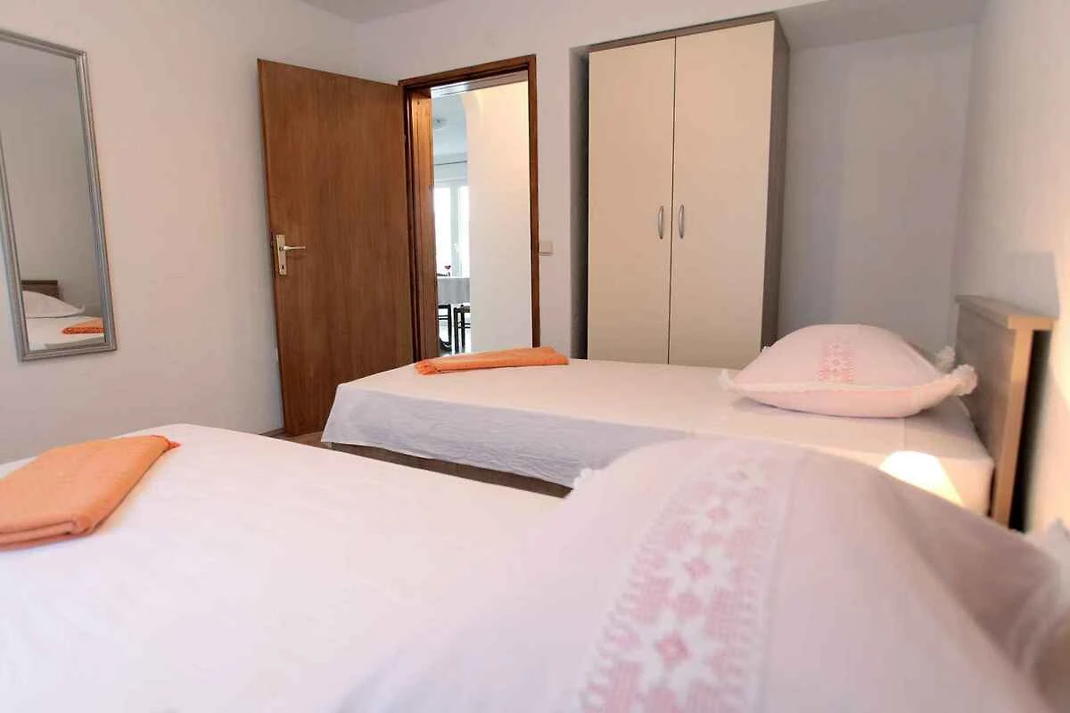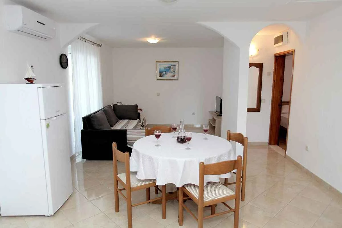 L' appartamento vacanze si trova in un appartamento casa ed è arredato in stile tradizionale. La proprietà si trova in periferia. Anche a causa della vista dalla struttura sul mare, il domicilio è popolare. Attrezzature: doccia da giardino e possibilità di grigliare. Culla (su prenotazione)