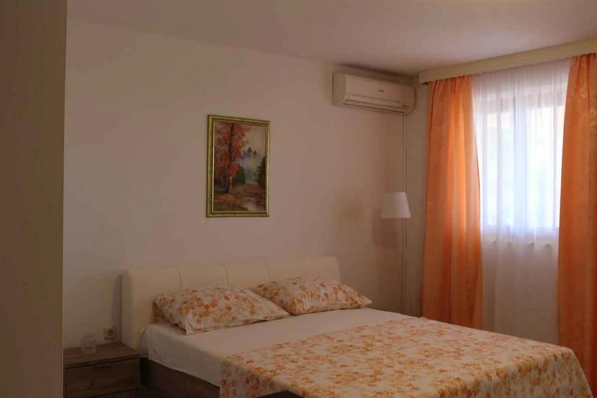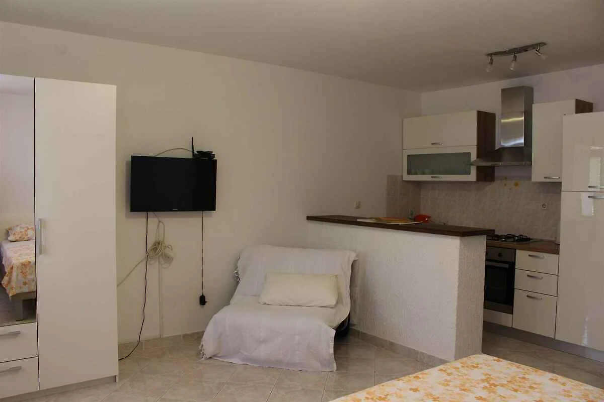 Domenica Santa. Lo studio si trova in una trama del giardino chiuso con fiori, arbusti e alberi, delimitata da una siepe. Il padrone di casa vive solo temporaneamente nella casa, ma usa un ingresso separato. Vista: mare e zona verde L'accesso avviene vicino a una strada secondaria (asfaltata). Parcheggio sulla strada davanti alla casa.