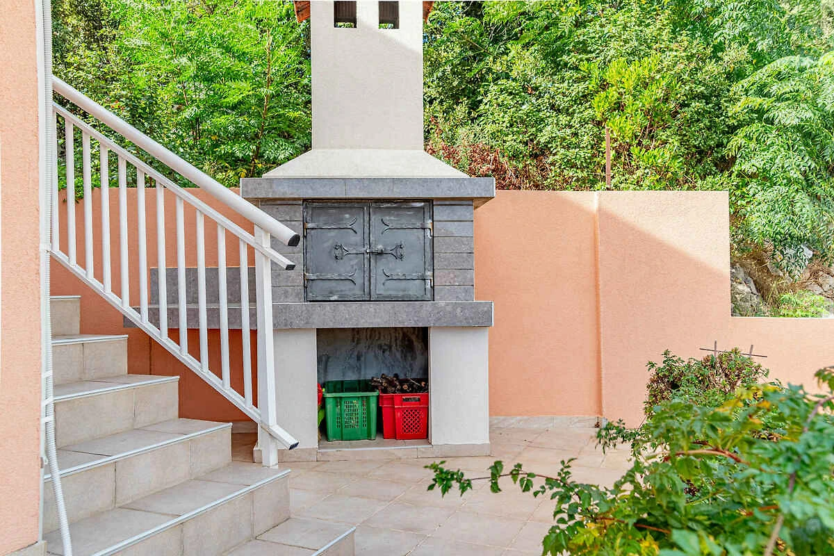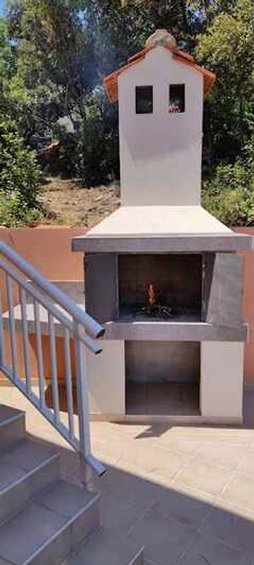 Brna. L' appartamento vacanze si trova in una trama del giardino chiuso con fiori e alberi, delimitata da una recinzione. Vista: Mare e spazio verde L'accesso avviene vicino a una strada secondaria (asfaltata). Parcheggio sulla proprietà.
