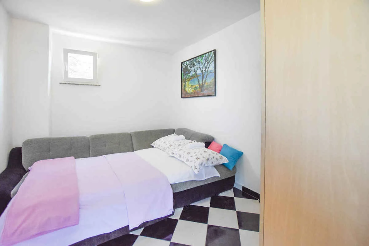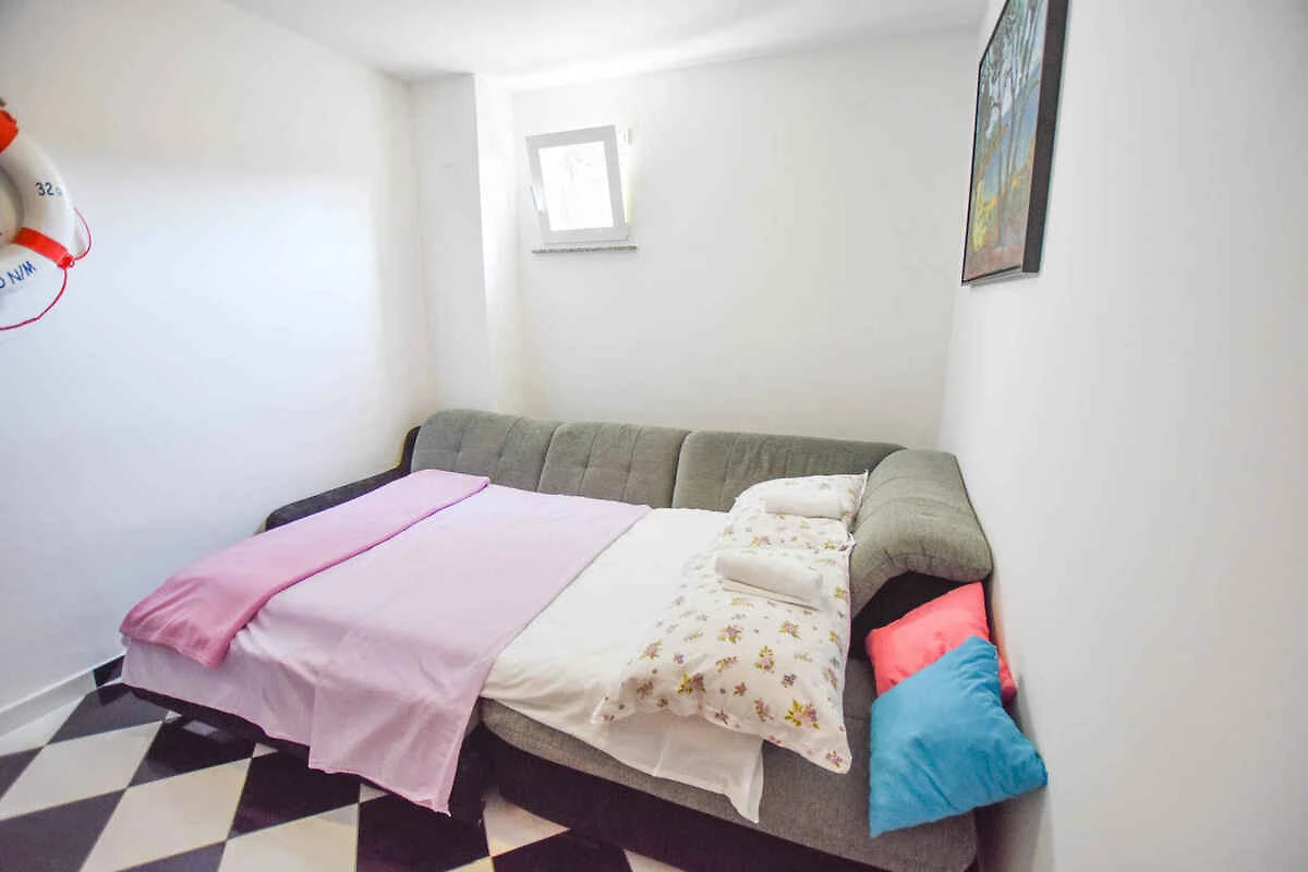 Tkon. La casa vacanza si trova in una trama del giardino chiuso, grande 300 mq con fiori, arbusti e alberi, delimitata da una recinzione e un muro. Il proprietario non abita nella casa o nella proprietá. La casa si trova sull'isola di Pasman nella baia di Druce. Si prega di effettuare il check-in presso la nostra agenzia dalla mattina al primo pomeriggio, poiché raggiungere l'alloggio prenotato di notte è molto scomodo e addirittura impossibile dopo la partenza dell'ultimo traghetto. Vista: mare, zona verde e giardino L'accesso avviene vicino a una strada secondaria (pietrisco o ghiaia). Parcheggio sulla strada davanti alla casa. Accessibilità in auto: Strada sterrata (attenzione alla guida). Questa casa vacanze è raggiungibile in auto, la strada è prevalentemente asfaltata.