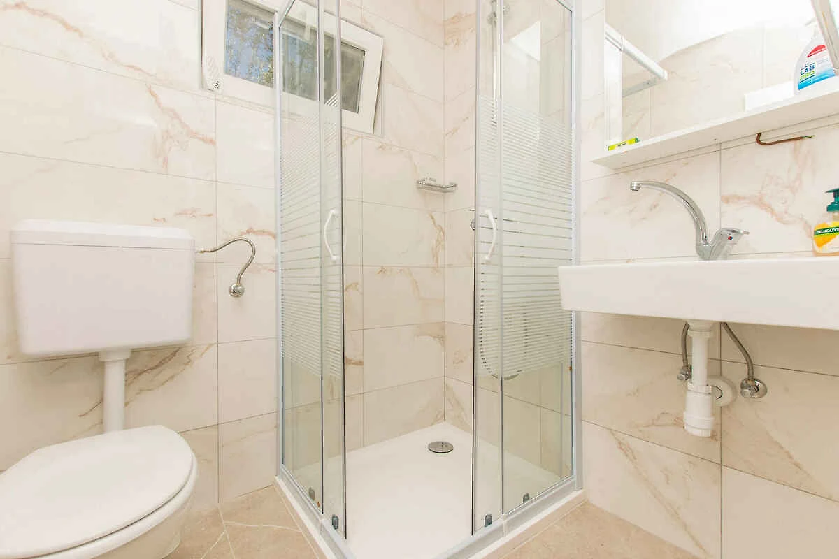 mare adriatico 5 m a Tkon (spiaggia 5 m a Tkon). tennis, noleggio barche tutto a 2 km a Tkon.