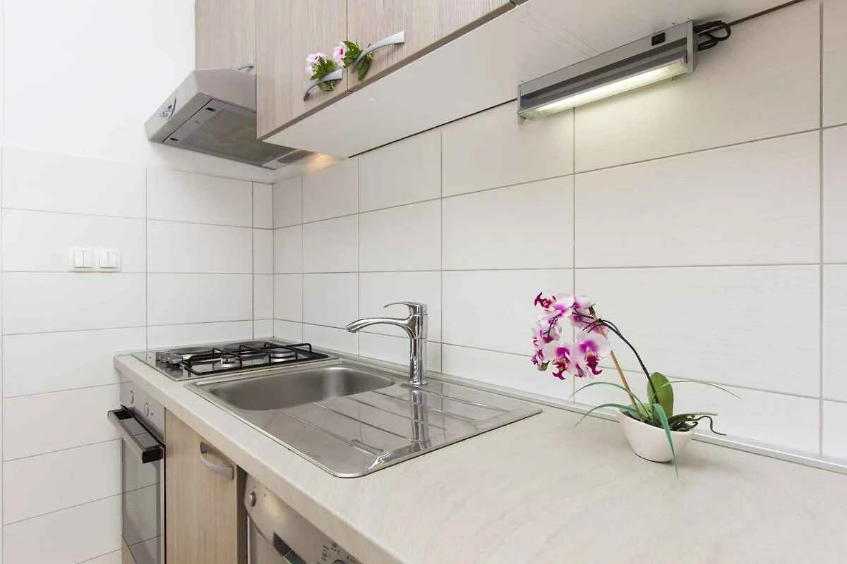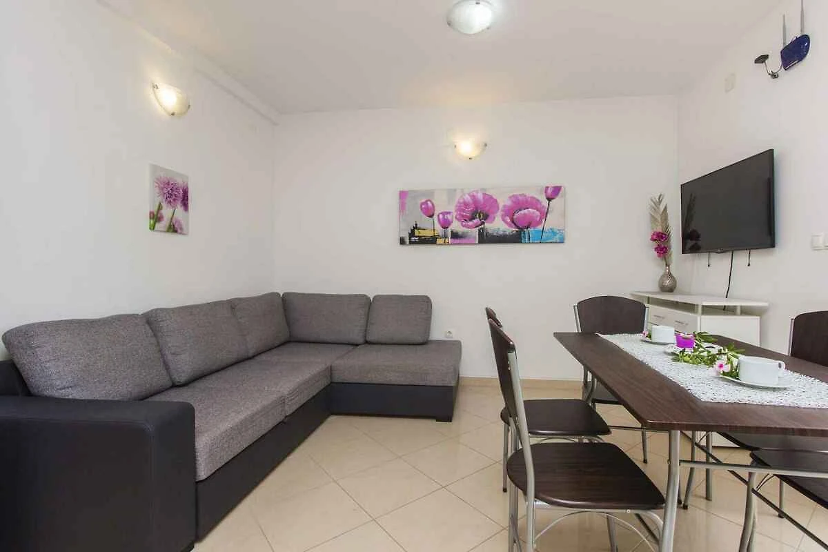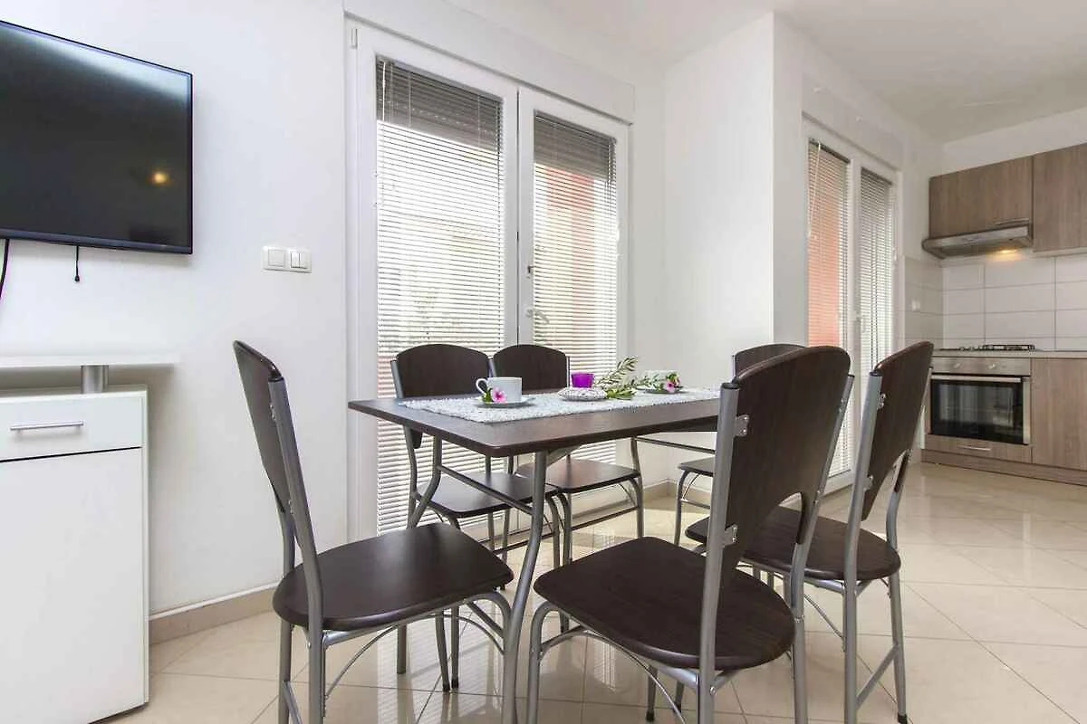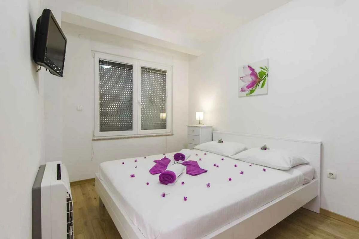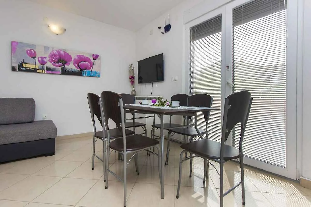 Jadrija. L' appartamento vacanze si trova in una trama del giardino chiuso con fiori e alberi, delimitata da una recinzione. L'accesso avviene vicino a una strada secondaria (asfaltata). Parcheggio sulla proprietà.