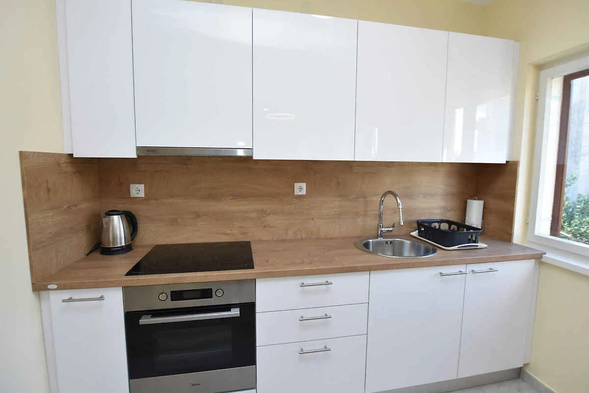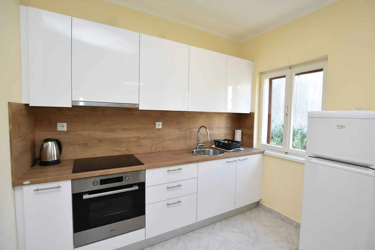Primošten. L' appartamento vacanze si trova in una trama del giardino chiuso con fiori, delimitata da una siepe e un muro. Il padrone di casa vive stabilmente nella casa, ma usa un ingresso separato. Vista: sul verde e sul cortile L'accesso avviene vicino a una strada secondaria (asfaltata). Parcheggio sulla strada davanti alla casa. Parcheggio: 150 m - 300 m dalla casa