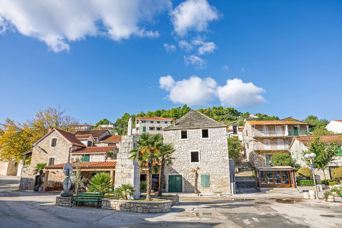 Acquisti 750 m, ristorante 50 m, centro città 1,7 km. La fermata più vicina del trasporto pubblico è a 800 m. Grohote: discoteca, farmacia a 1200 m ciascuno. Banca 2,1 km. Medico a Rogač 550 m. Aeroporto di Spalato 50 km. In estate: Mare Adriatico 15 m a Rogač (spiaggia 15 m a Rogač con pietre). Noleggio barche a Rogač 650 m.