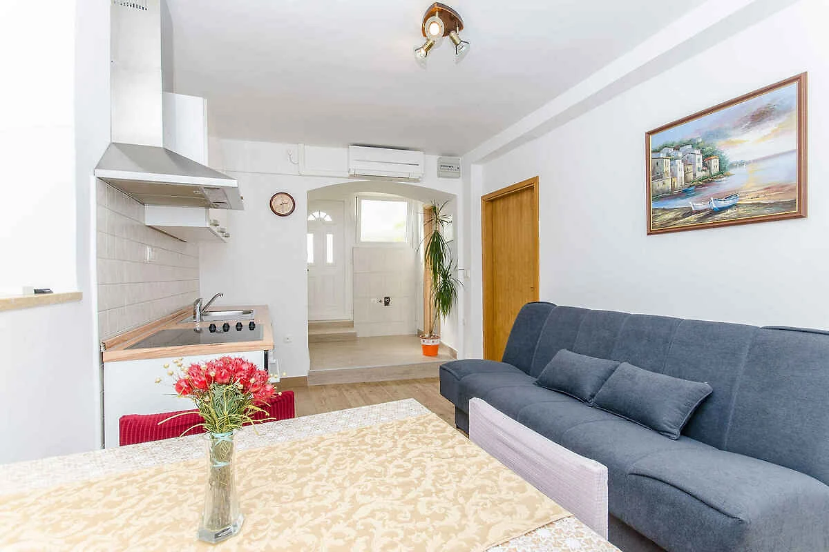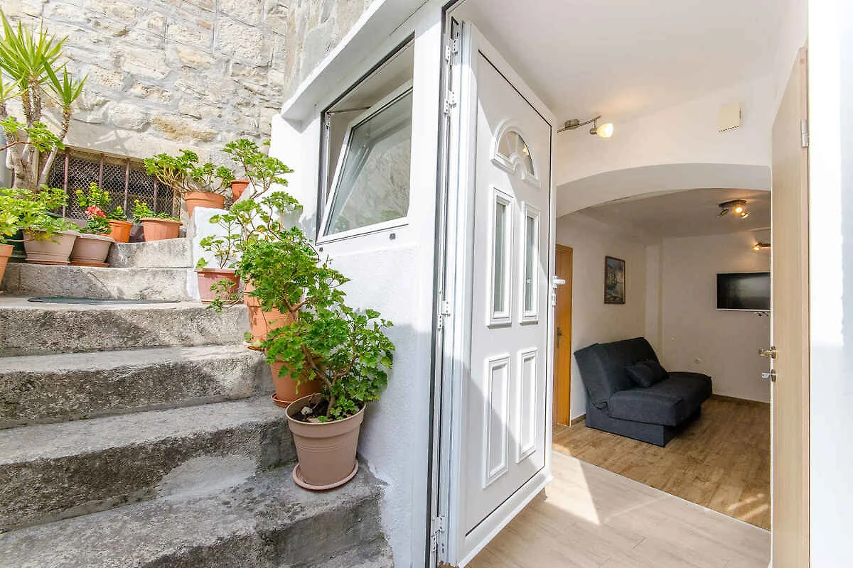 Dividere. L' appartamento vacanze si trova in una trama del giardino chiuso con fiori, delimitata da un muro. Il proprietario non abita nella casa o nella proprietá. L'accesso avviene vicino a una strada secondaria (asfaltata).