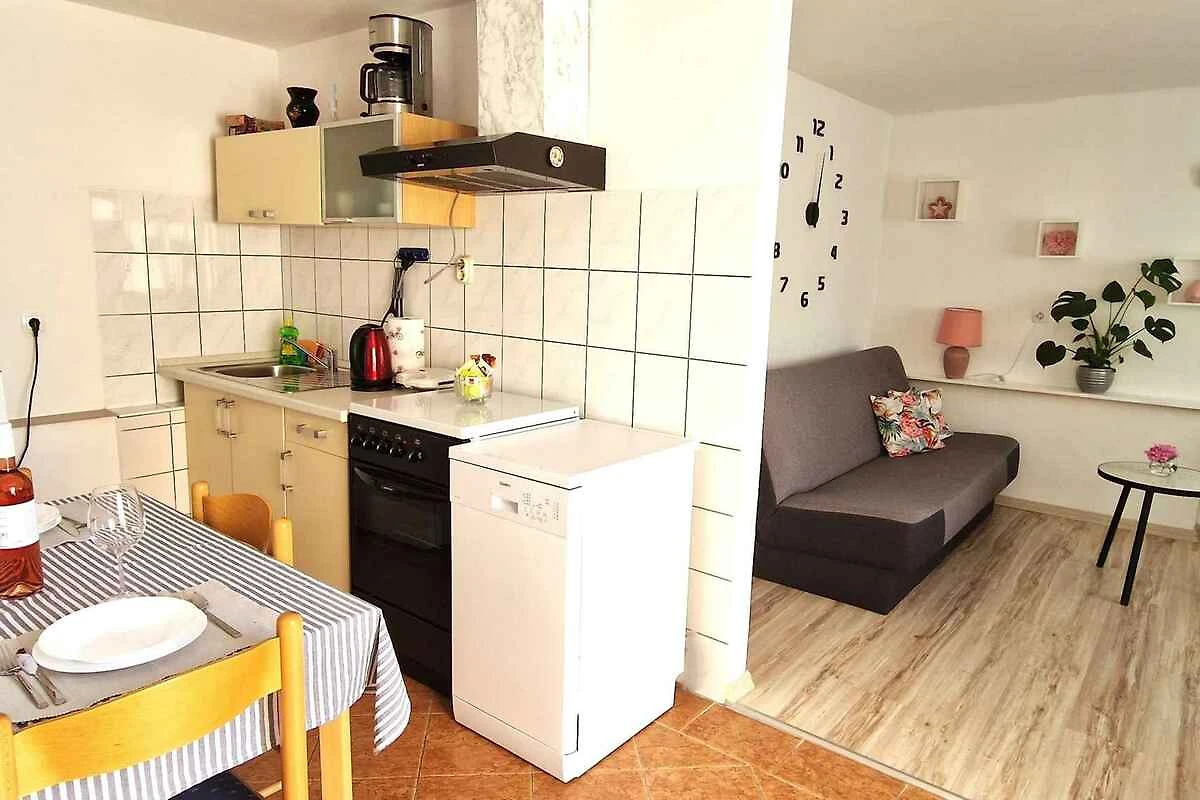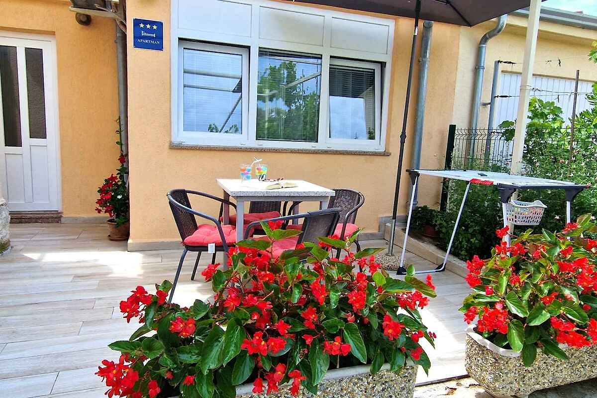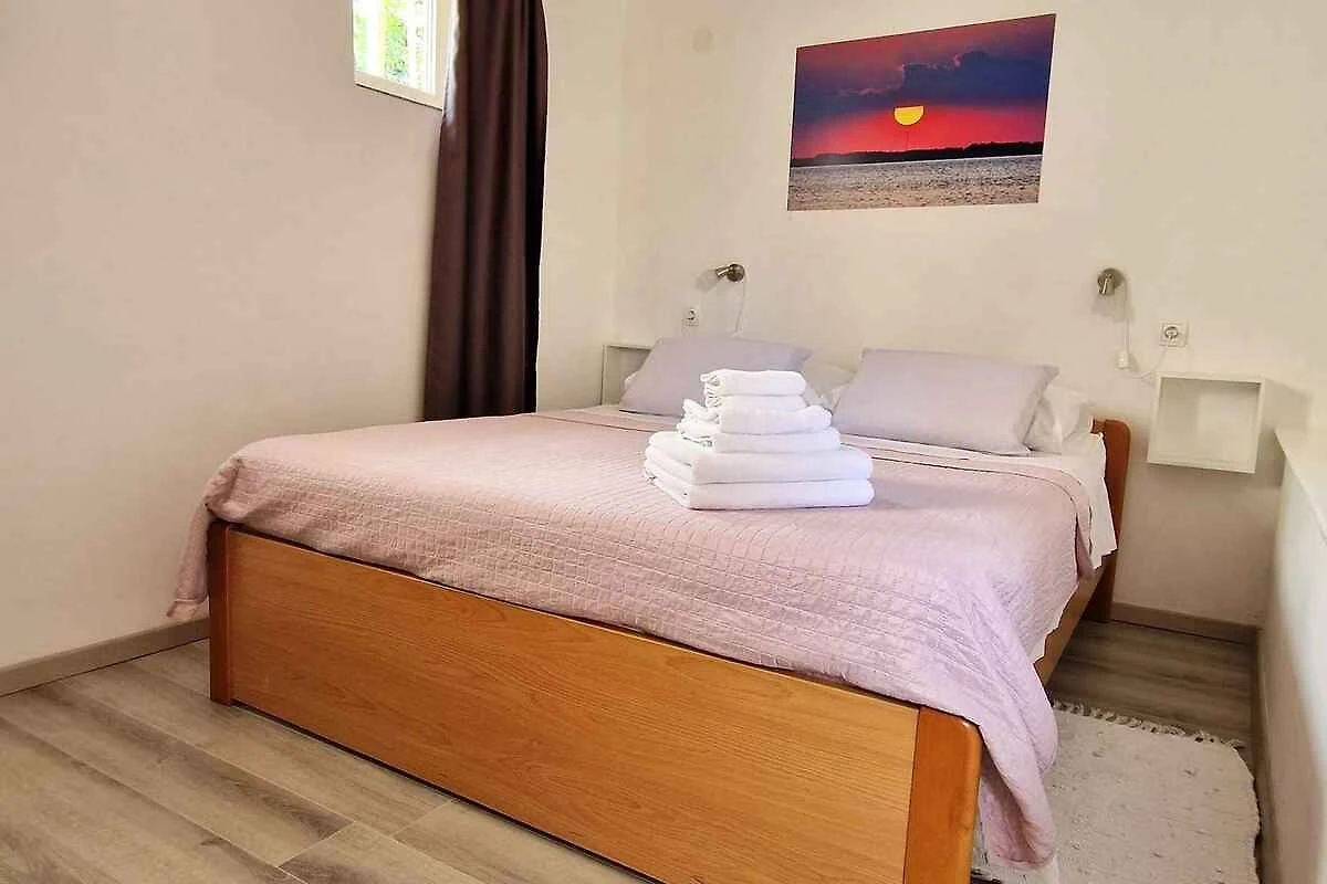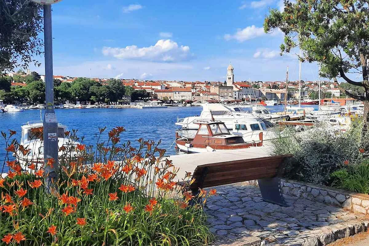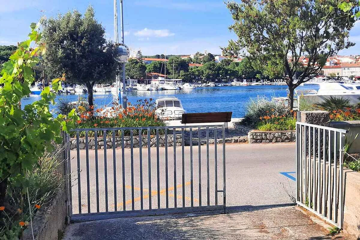 Krk. L’appartamento per le vacanze si trova su un terreno recintato, delimitato da una recinzione e un muro. Il locatore abita in un edificio separato sulla proprietà. Il mare si trova a 20 m dall’appartamento per le vacanze. L’accesso avviene tramite una strada secondaria (asfaltata). Parcheggio sulla strada davanti alla casa.
