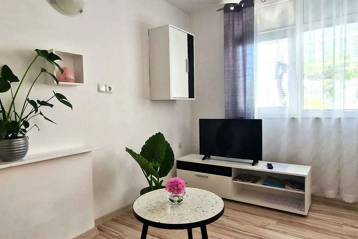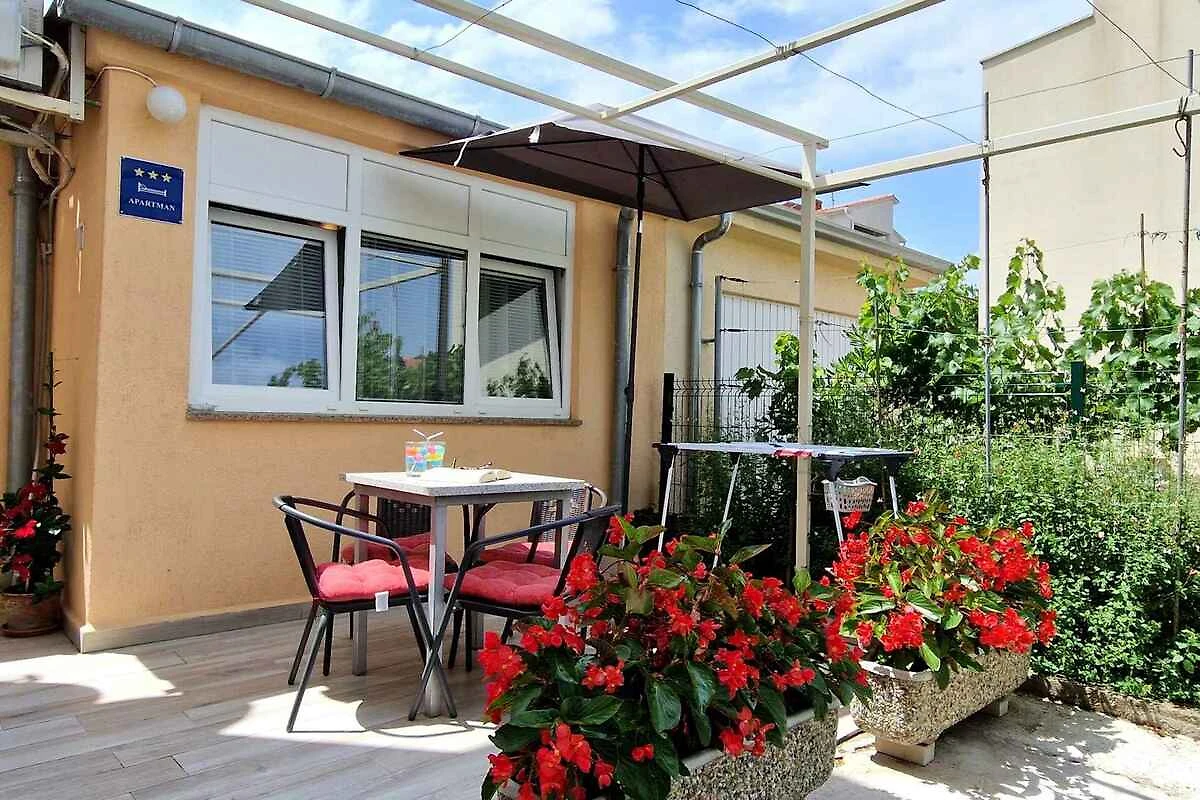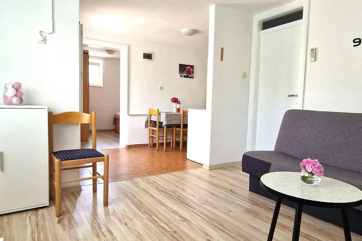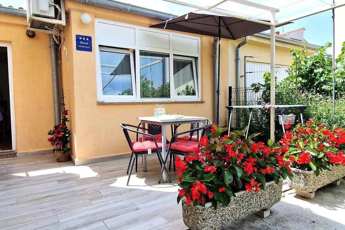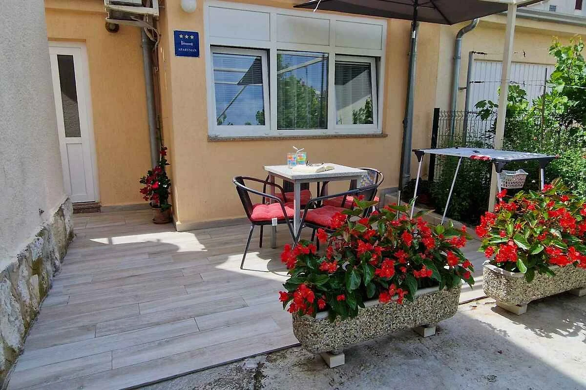 Krk. L’appartamento per le vacanze si trova su un terreno recintato, delimitato da una recinzione e un muro. Il locatore abita in un edificio separato sulla proprietà. Il mare si trova a 20 m dall’appartamento per le vacanze. L’accesso avviene tramite una strada secondaria (asfaltata). Parcheggio sulla strada davanti alla casa.