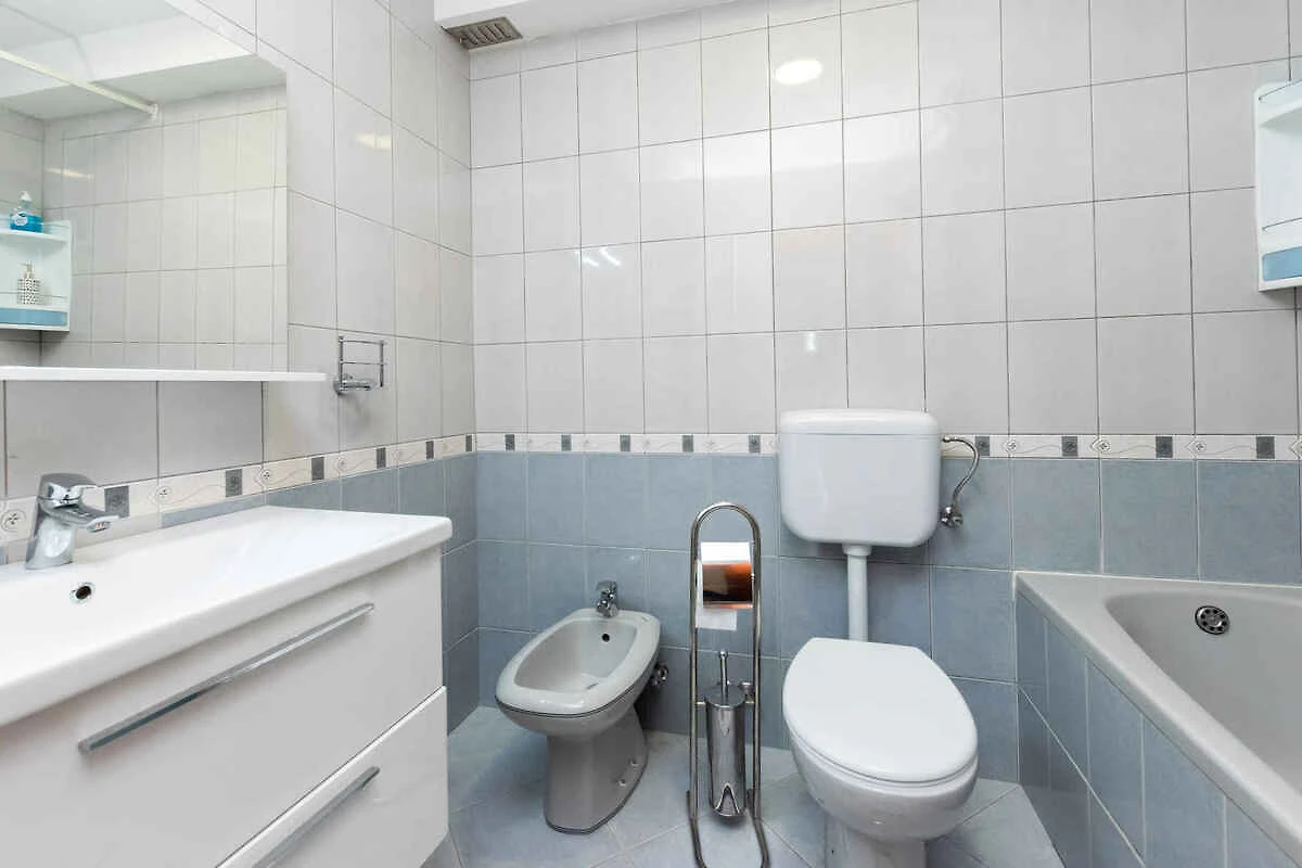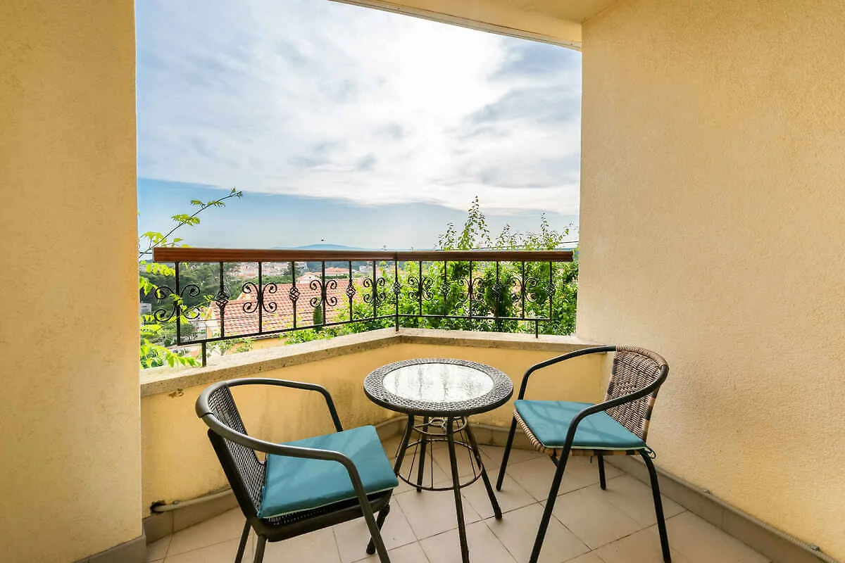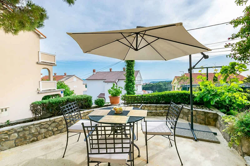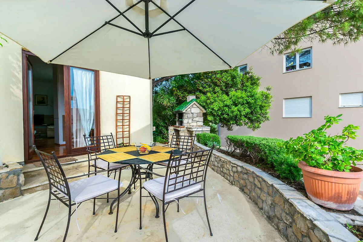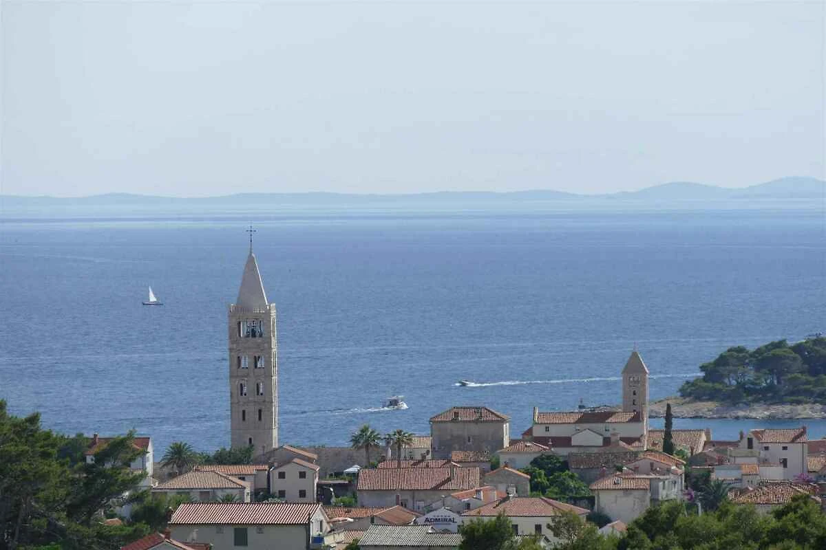 Rab. La casa vacanza si trova in una trama del giardino chiuso, grande 70 mq, delimitata da una recinzione. Parcheggio in posto auto coperto e sulla strada davanti alla casa.