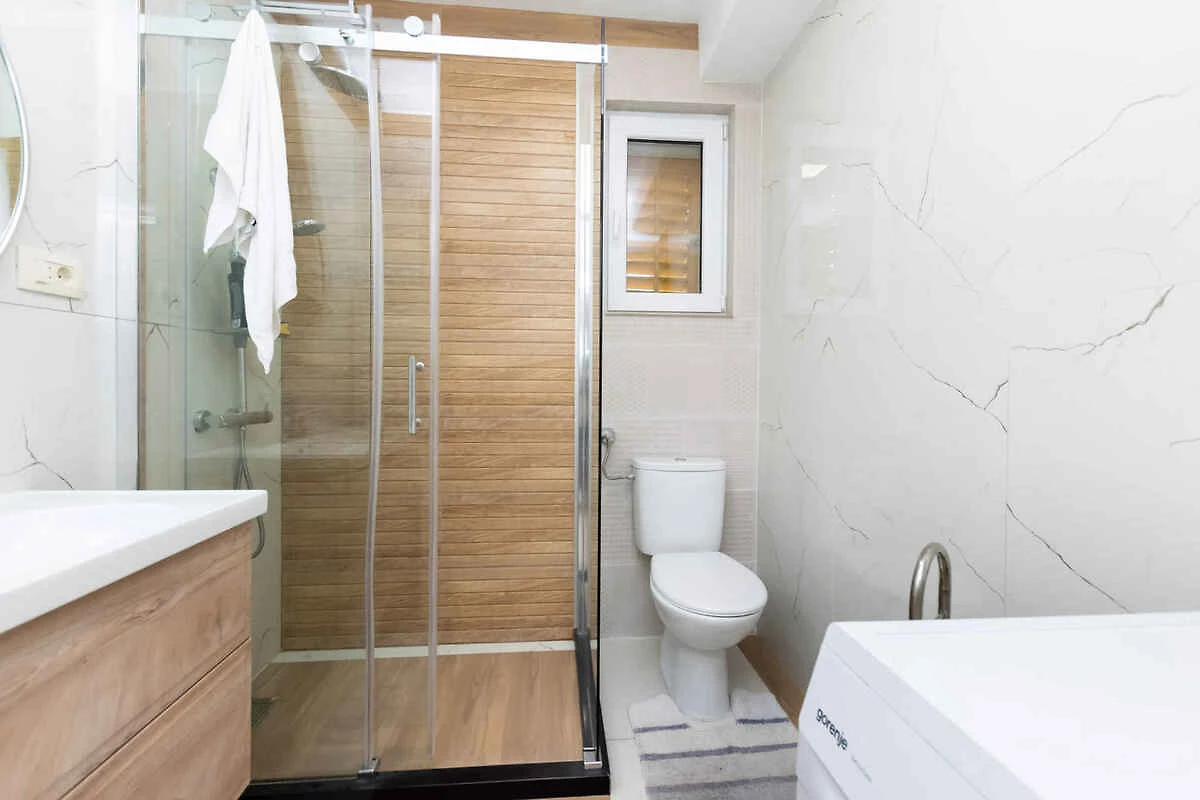 Piano superiore: Camera da letto (25 mq) con 1 letto matrimoniale e accesso al balcone (coperto, mobili da giardino, 1 tavolo, 2 sedie). Camera da letto (20 mq) con 1 letto matrimoniale. Bagno con vasca da bagno e WC. Bagno con vasca da bagno, 1 lavandino e WC. Bagno con lavatrice, doccia, 1 lavandino, WC, asciugacapelli e finestra.