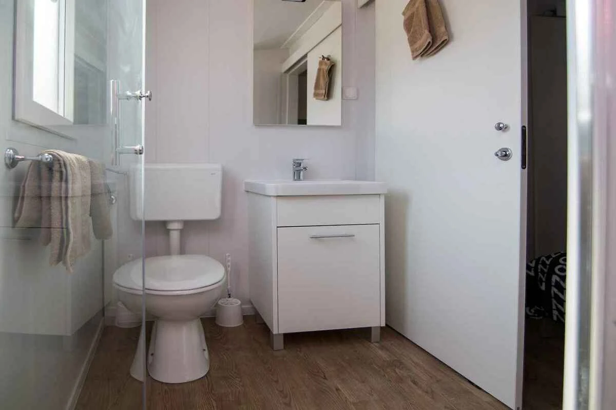 La casa vacanze è una casa a schiera e arredata moderna. La proprietà si trova in un campeggio, in periferia. Anche a causa della vista dalla struttura sul mare e tranquilla e soleggiata posizione sull'acqua, il domicilio è popolare. Attrezzature: prato per prendere il sole, lettino da sole, doccia da giardino, possibilità di grigliare, terrazza e mobili da giardino.