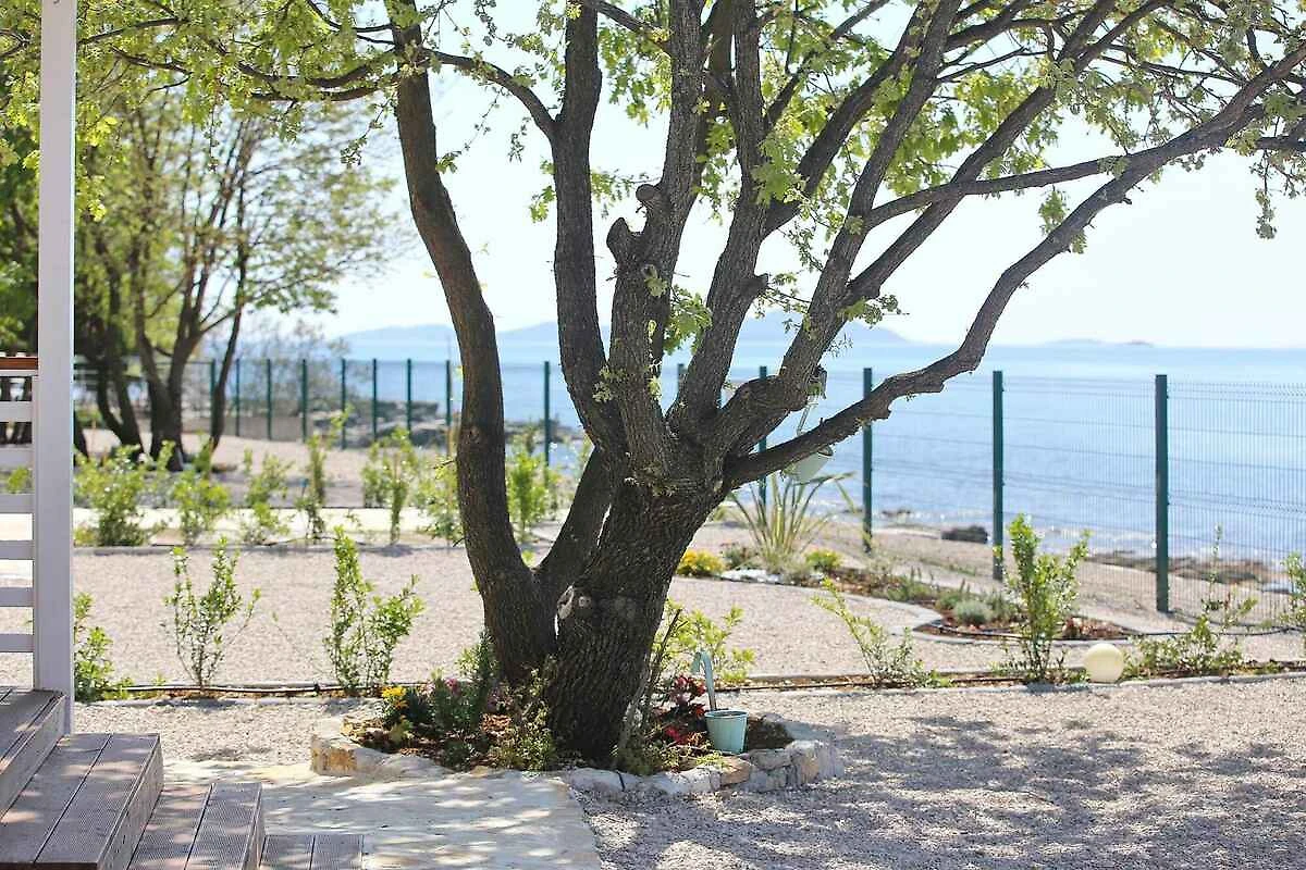 Biograd na Moru. La casa vacanza si trova in un campeggio, in una trama del giardino chiuso, grande 1500 mq con prato, fiori e alberi, delimitata da una recinzione e una siepe. L'accesso avviene vicino a una strada secondaria (asfaltata). Parcheggio sulla strada davanti alla casa.