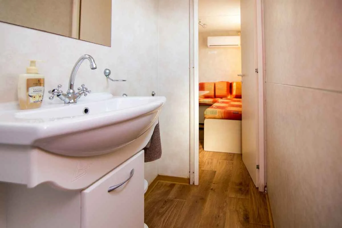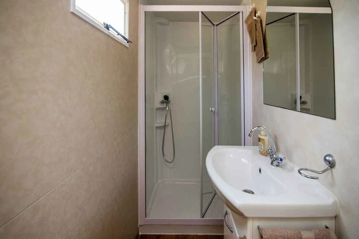 La casa vacanze è una casa a schiera e arredata moderna e pratica. La proprietà si trova in un campeggio, in periferia. Anche a causa della vista dalla struttura sul mare e tranquilla e soleggiata posizione sull'acqua, il domicilio è popolare. Attrezzature: prato per prendere il sole, lettino da sole, doccia da giardino, possibilità di grigliare, terrazza e mobili da giardino.