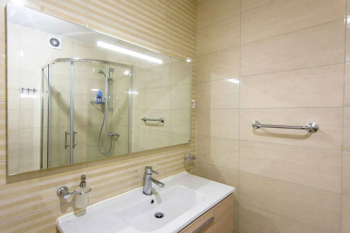 Soggiorno con 2 letti aggiuntivi su divano letto doppio, angolo di seduta e TV. Camera da letto con 2 letti singoli. Camera da letto con 1 letto matrimoniale. Cucina con zona pranzo (6 posti), fornello elettrico (fornello a induzione, 4 fornelli), forno, cappa aspirante, lavastoviglie, frigorifero e caffettiera. Bagno con doccia, 2 lavandino e WC.