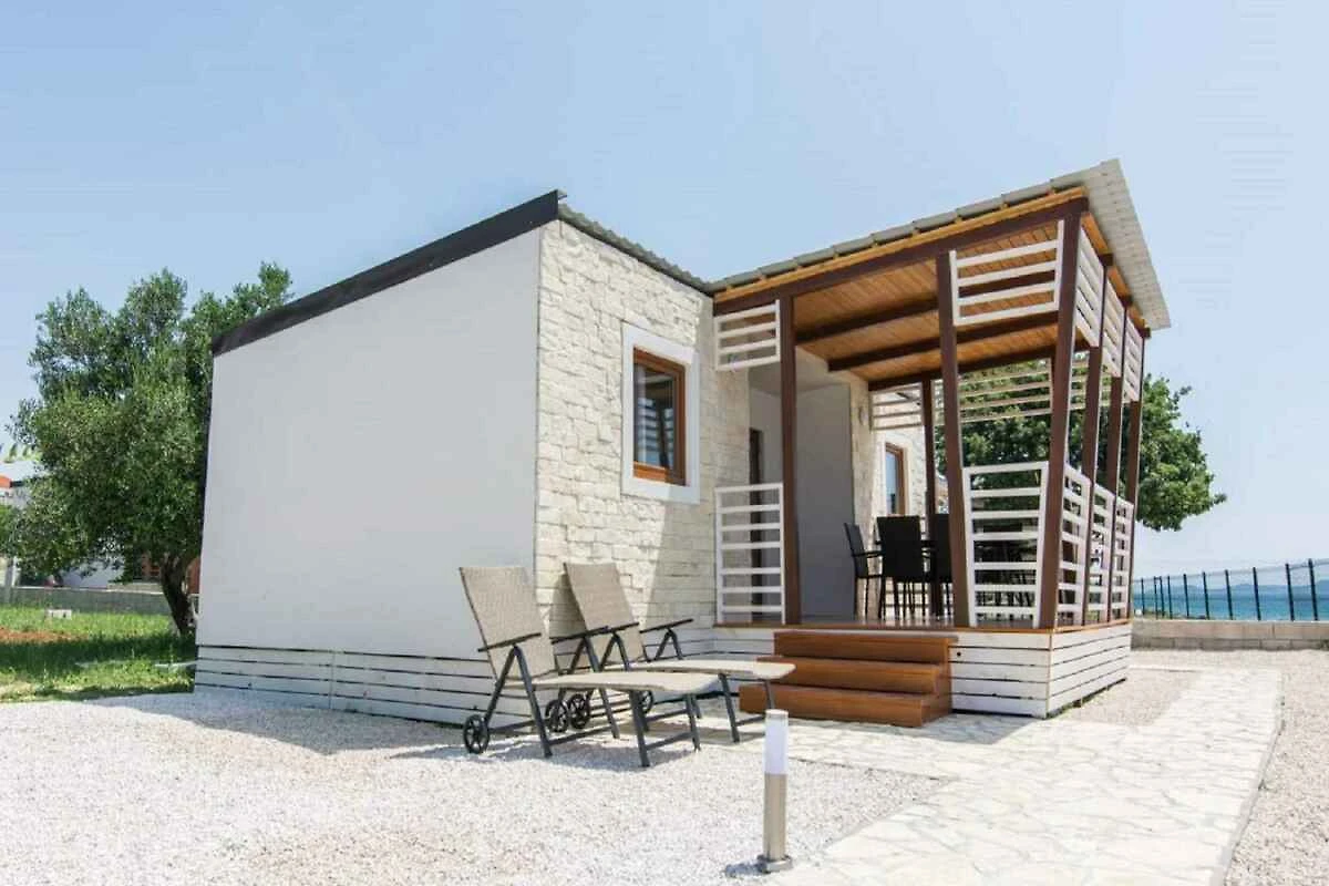 Biograd na Moru. La casa mobile si trova in un villaggio turistico, in una trama del giardino chiuso, grande 2200 mq, delimitata da una recinzione. Parcheggio sulla strada davanti alla casa.