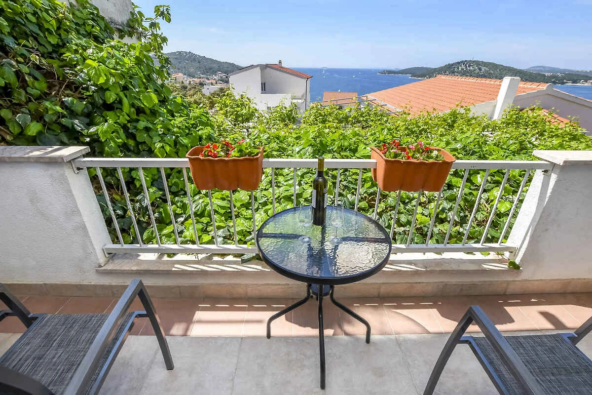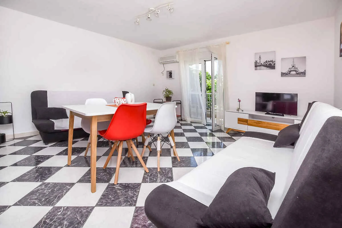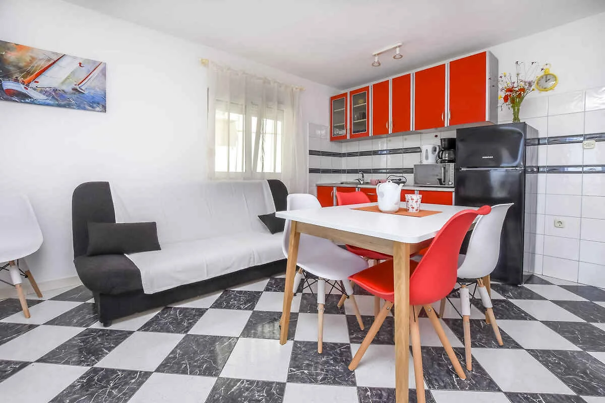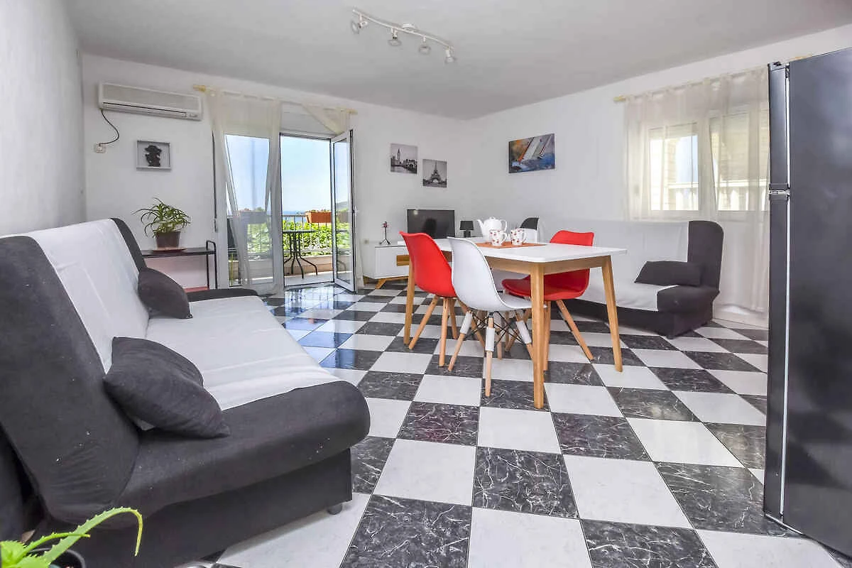 L' appartamento vacanze si trova in un appartamento casa ed è arredato moderno. La proprietà si trova in una zona residenziale, in periferia. Anche a causa della vista dalla struttura sul mare e soleggiata posizione, il domicilio è popolare. Attrezzature ad uso esclusivo: mobili da giardino.