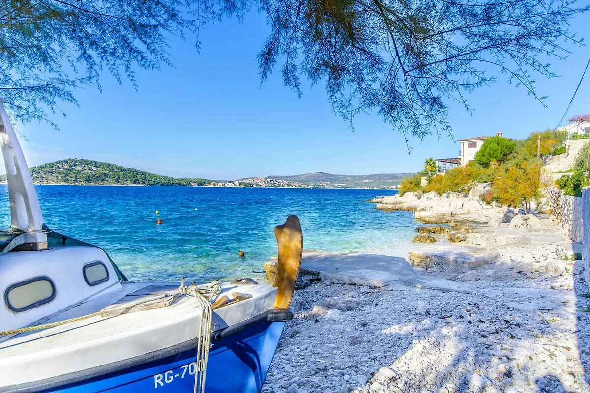 Razanj. L' appartamento vacanze si trova in una proprietá chiuso, delimitata da un muro. Se volete fare il bagno nel mare, è a 200 metri di distanza. Le attrazioni di Ražanj (Rogoznica) si possono vedere nel centro, a 400 metri di distanza. L'accesso avviene vicino a una strada secondaria (asfaltata). Parcheggio sulla proprietà.