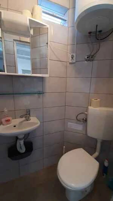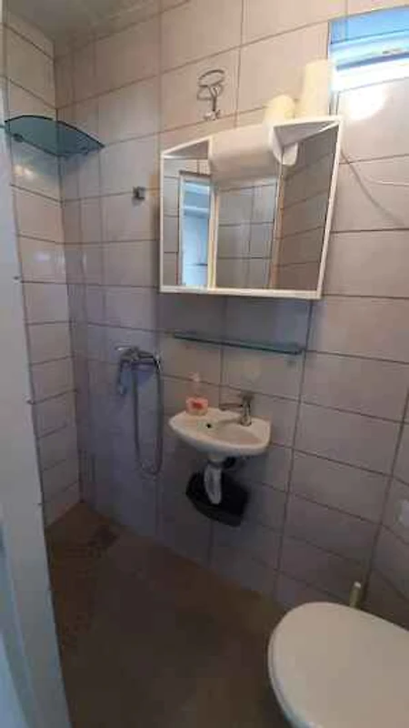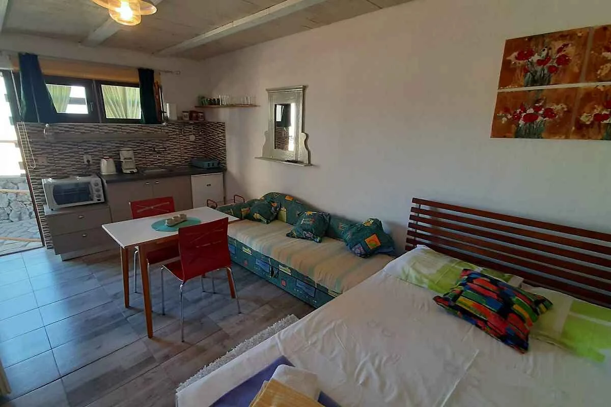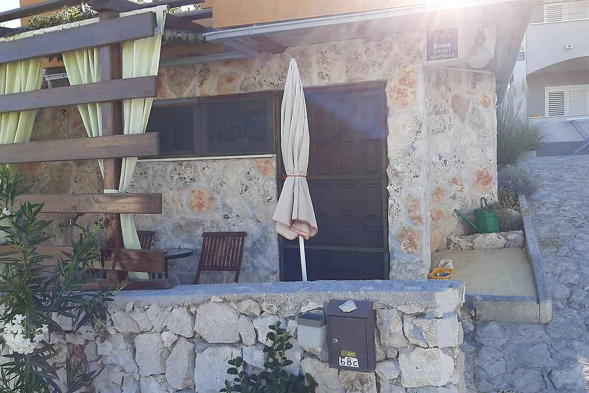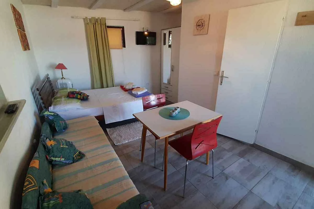 Lo studio si trova in un appartamento casa ed. La proprietà si trova alla fine di un vicolo cieco, in centro città. Anche a causa della vista dalla struttura sul mare, il domicilio è popolare. Attrezzature in comune: doccia da giardino, possibilità di grigliare, terrazza e mobili da giardino.