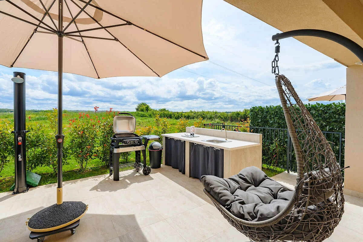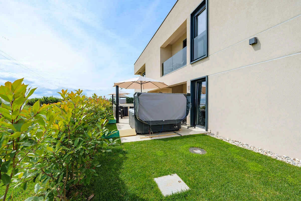 Umag. L' appartamento vacanze si trova in una trama del giardino. Il padrone di casa vive in un altro edificio nella stessa proprietá. Parcheggio (per 1 auto) sulla proprietà.