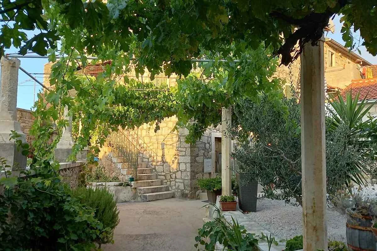 Postira. L' appartamento vacanze si trova in una trama del giardino chiuso, delimitata da una recinzione. L'accesso avviene vicino a una strada secondaria (asfaltata). Parcheggio sulla un parcheggio nel villaggio (distanza 150 m).