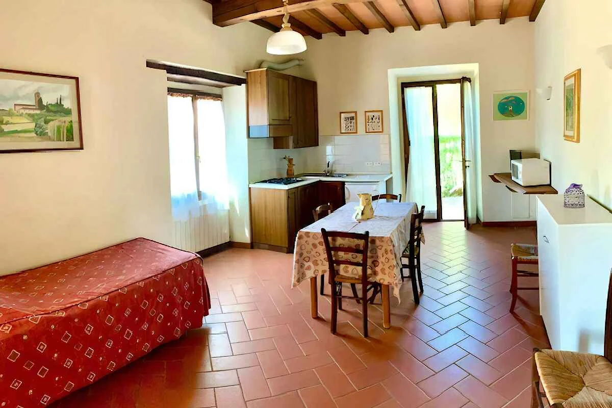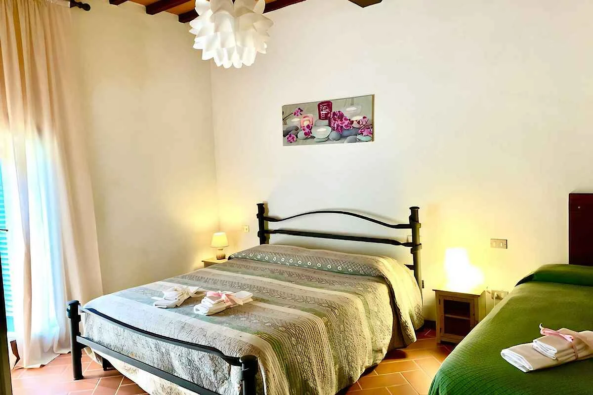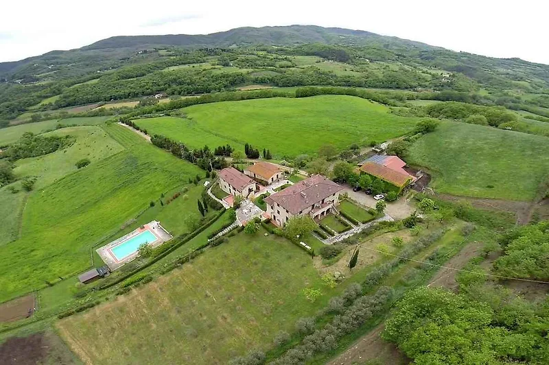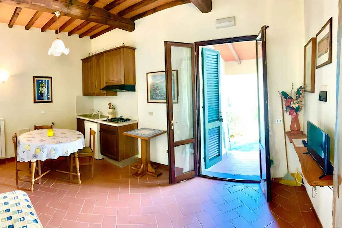 Dicomano. L' appartamento vacanze si trova in un villaggio turistico. Si tratta di un'antica tenuta composta da una grande villa di campagna, fienile e stalla, ristrutturati tenendo conto dei materiali e dell'architettura locale. Il casale fa parte di una tenuta di circa 60 ettari con campi di mais, boschi e pascoli per l'allevamento del bestiame Tutto intorno si ha una splendida vista sulle colline fiorentine, vigneti e uliveti Parcheggio sulla proprietà.