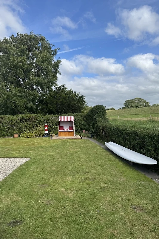 L'attrezzatura non lascia desiderare: cucina moderna, accogliente soggiorno e un giardino curato con terrazza coperta e sdraio da spiaggia. Due biciclette e un carrello erano disponibili nel giardino. La padrona di casa è molto gentile e disponibile. Il saluto di benvenuto con la borsa del Mare del Nord è stata una bella gesto.