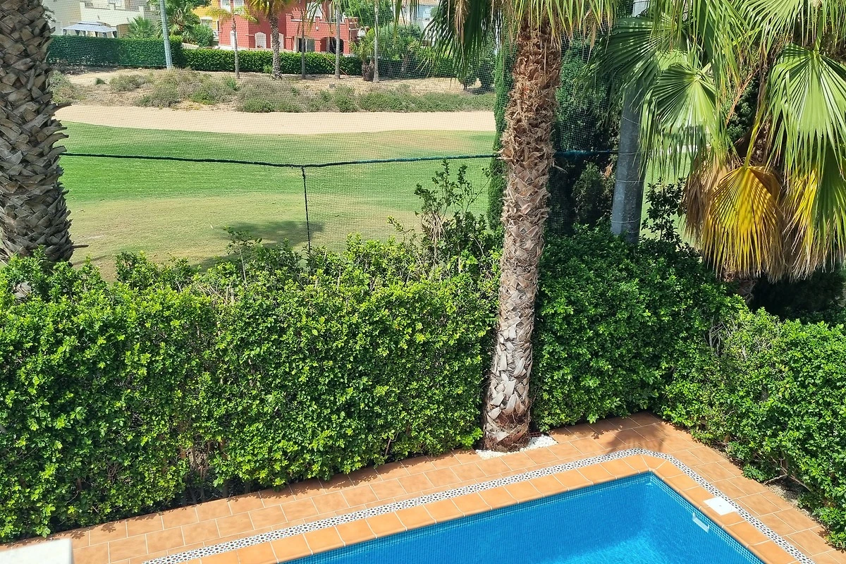 Scoprite la bellezza della regione Costa Calida con il magnifico 5* Mar Menor Golf Resort nella Villa Bella, una accogliente casa vacanze con piscina sul fairway. Questa affascinante villa offre non solo molta privacy ma anche spazio per un massimo di 4 ospiti. Dispone di 2 camere da letto, perfetta per piccole famiglie, amici golfisti, chi desidera svernare o anche coppie che vogliono prendersi una pausa dalla routine quotidiana. La Villa Bella è circondata da un magnificamente curato giardino, il luogo perfetto per rilassarsi e godersi le giornate di sole. Un barbecue è a disposizione, ideale per piacevoli serate alla griglia. La piscina privata è un vero punto forte, perfetta per rinfrescarsi nelle giornate calde. Grazie all’ottima copertura solare, la stagione balneare viene prolungata. Per la vostra auto è disponibile un parcheggio/carport davanti alla casa. All'interno vi aspetta una cucina moderna e completamente attrezzata con lavastoviglie, microonde, bollitore e macchina da caffè. La casa dispone di riscaldamento centralizzato a gas per l'inverno e anche l'aria condizionata garantisce temperature piacevoli, indipendentemente dal tempo esterno. Per il vostro intrattenimento è disponibile una TV con canali via cavo, sia internazionali che in lingua tedesca, e la veloce connessione Wi-Fi 5G vi assicura di restare sempre connessi. La Villa Bella è una struttura per non fumatori. Affitti a lungo termine durante i mesi invernali sono possibili, perfetti per senior, golfisti, chiunque pianifichi un soggiorno prolungato in questa regione soleggiata. Grazie all'esposizione sud-ovest, la terrazza soleggiata è un punto forte in inverno, oppure la sera si può gustare un bicchiere di vino con vista sul campo da golf, sul verde e curato fairway. La Villa Bella offre un soggiorno accogliente con mobili confortevoli e pavimento piastrellato, una cucina completamente attrezzata con elettrodomestici moderni e una zona pranzo con vista sulla piscina e sul verde.
