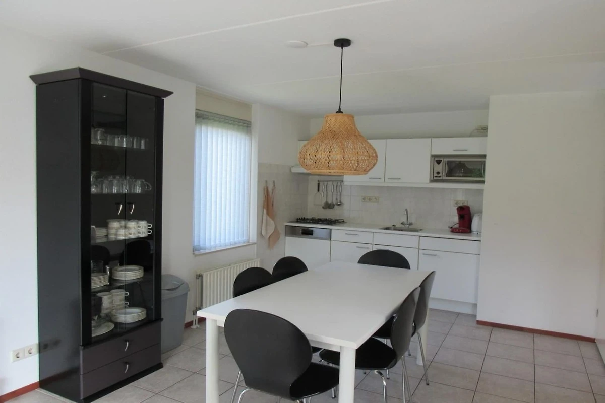 Il soggiorno con portefinestre è arredato con gusto e si apre su una moderna cucina aperta. C'è 1 camera da letto con 2 letti al piano terra. Al primo piano troverai altre due camere da letto con 2 letti ciascuna. C'è anche un ampio bagno con un WC extra.