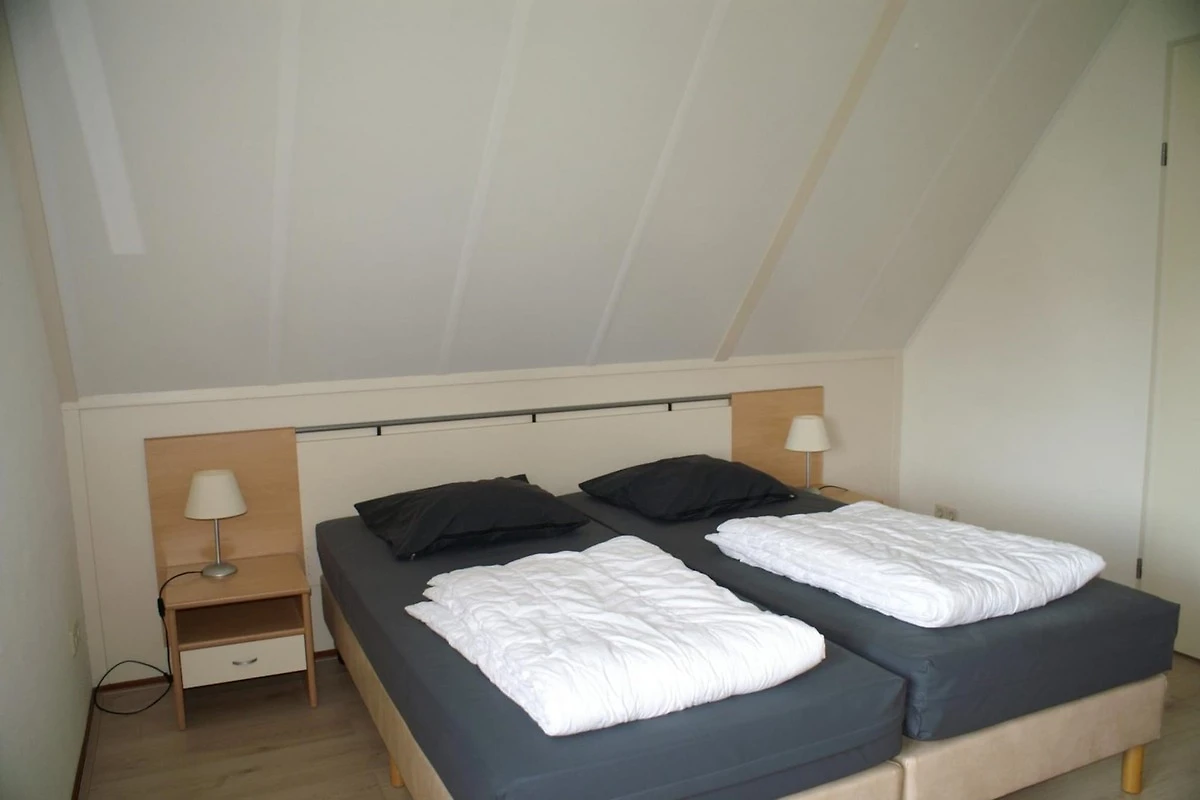 Per una casa indipendente con privacy, scegliete questa affascinante opzione situata nel villaggio turistico Schoneveld. La casa dispone di un grazioso giardino e di un vialetto privato per la vostra auto. Il soggiorno, arredato con gusto, si apre attraverso porte-finestre sull'esterno e si apre su una moderna cucina a vista. Al piano terra si trova un'accogliente camera da letto con due letti, mentre il primo piano offre altre due camere da letto, ciascuna con due letti. Un ampio bagno con WC aggiuntivo aggiunge ulteriore comfort al soggiorno.