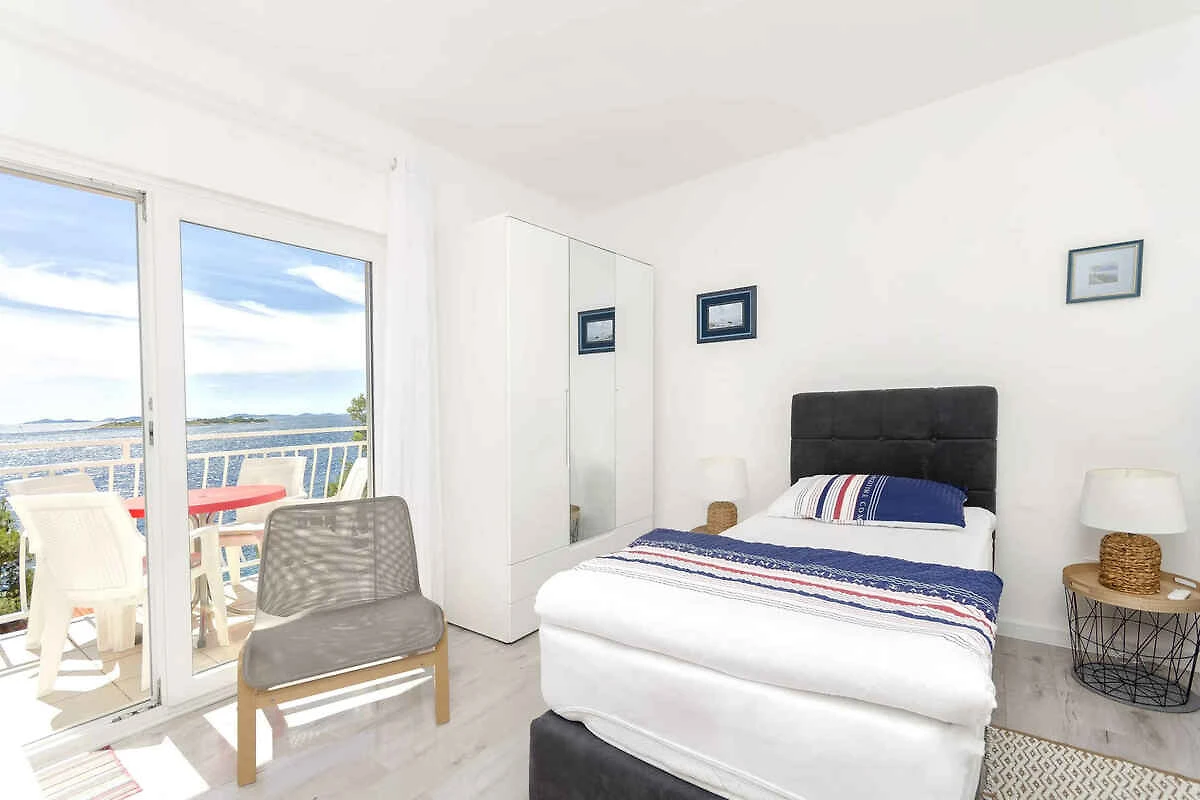 mare adriatico 30 m a Tribuna (spiaggia 60 m a Tribuna con ghiaia e pietre). noleggio barche a Zadar 65 km.
