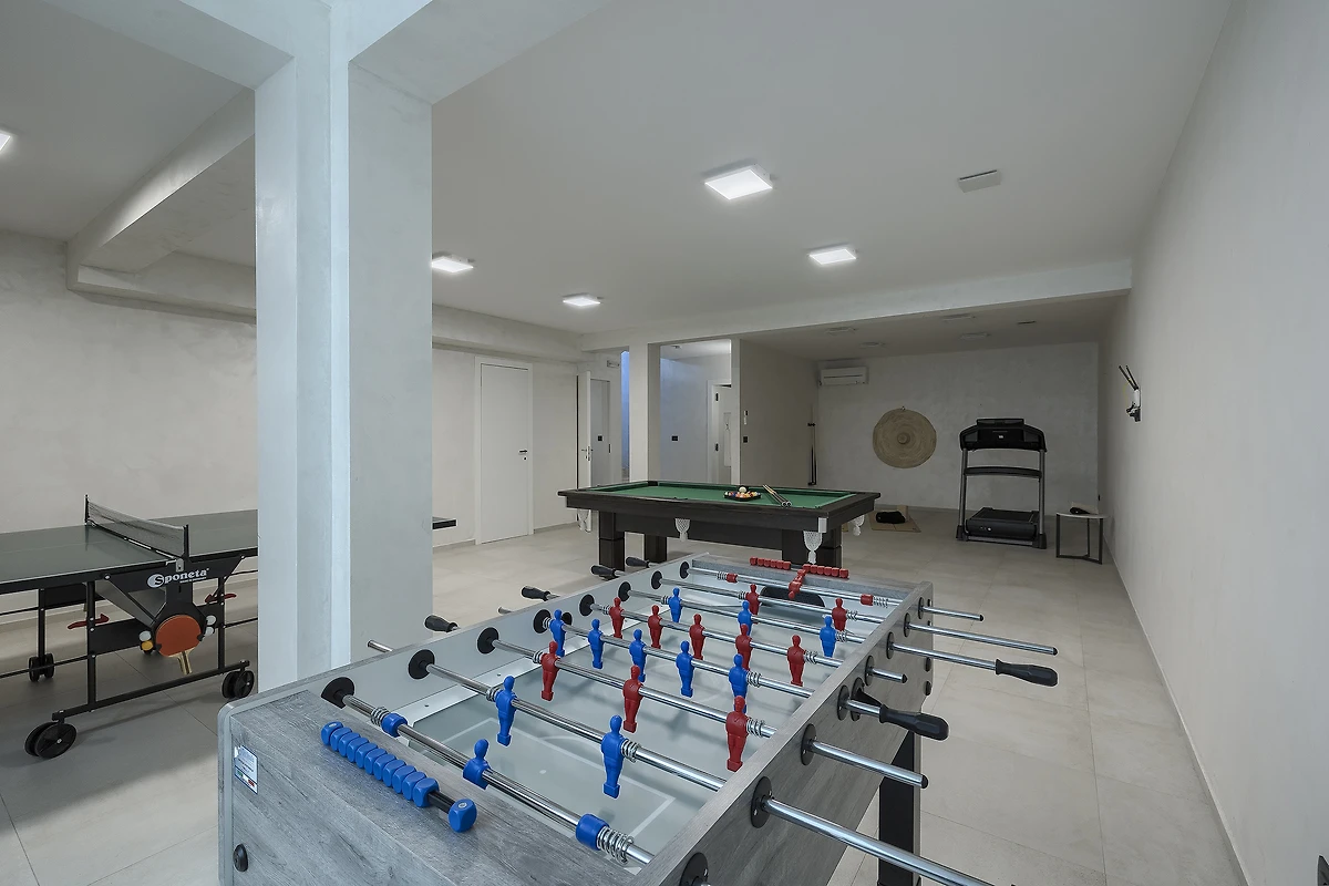Questa villa è un'ottima scelta per coloro che vogliono esplorare l'Istria e rilassarsi in un ambiente tranquillo. All'interno della struttura gli ospiti possono divertirsi con il ping-pong, il calcio balilla e il biliardo nella sala giochi al piano terra. I bambini possono divertirsi sul trampolino. Al piano terra si trova anche una sauna, perfetta per rilassarsi dopo un bagno in piscina.