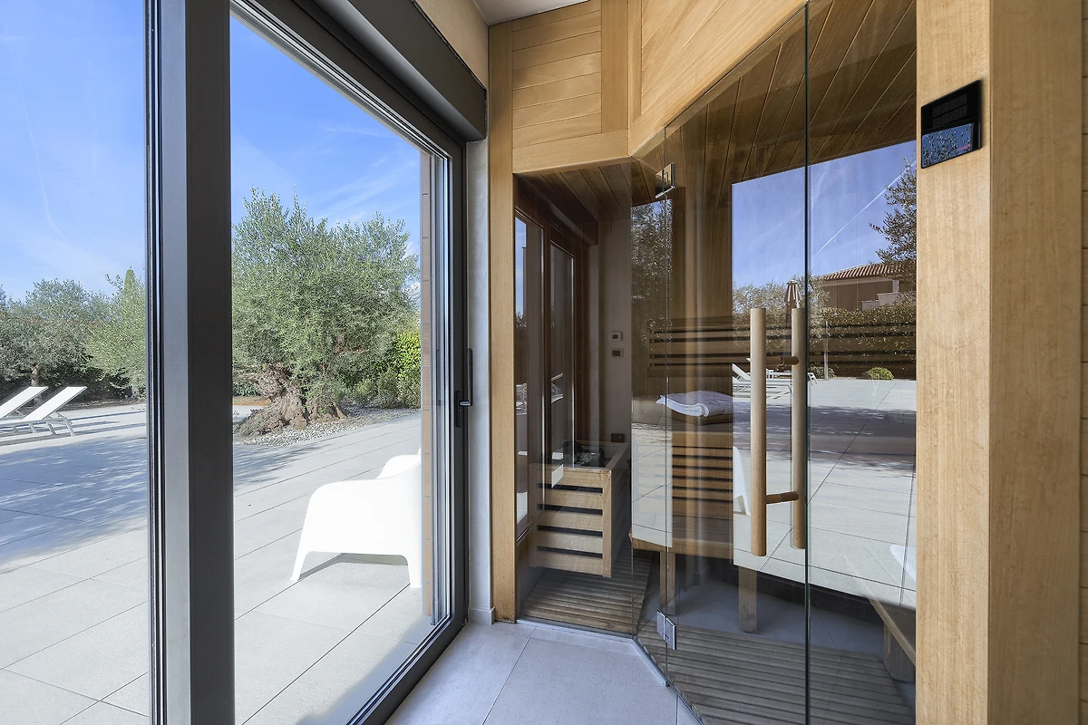 La proprietà ha uno spazio esterno confortevole e un interno moderno. Il clou è la grande piscina riscaldata (81 m²) situata sulla terrazza antistante la villa. Circondato da un giardino rigoglioso, lettini e piante mediterranee autoctone. Una sala da pranzo esterna con spazio per barbecue è perfetta per rilassarsi nel pomeriggio ascoltando i suoni della natura.