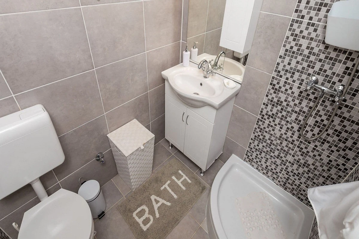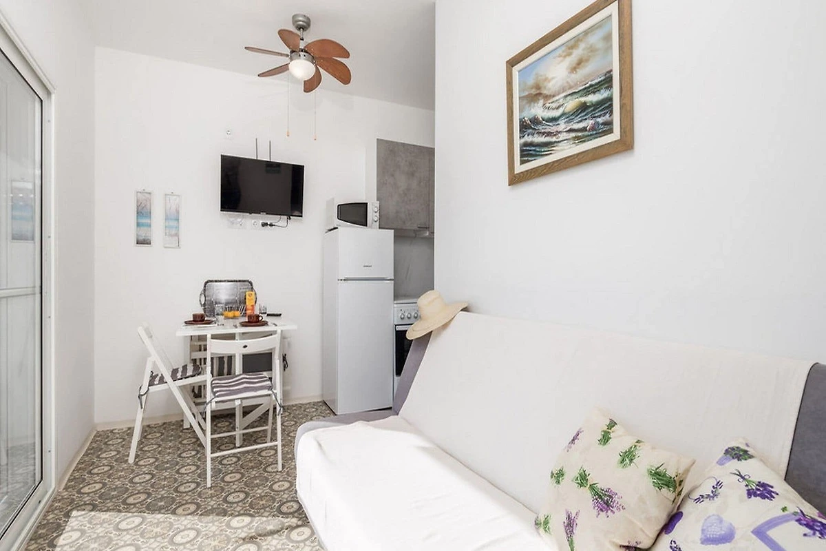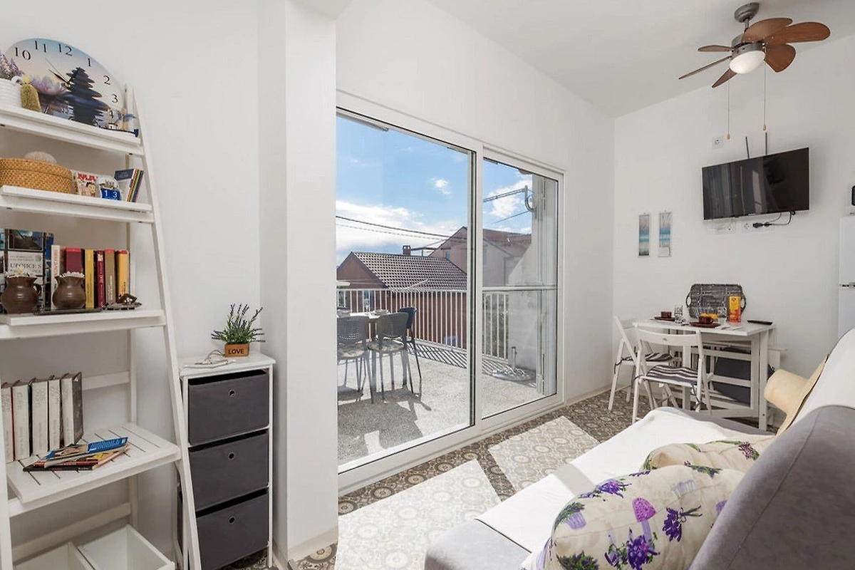 This comfortable one bedroom apartment with furnished terrace is perfectly fit for up to three people. It features free WiFi, and air-conditioning. The living room is equipt with a sofa and flat screen Internet enabled TV. The apartment comes with well equiptted kitchen, a private bathroom and a bedroom. Bathroom includes a shower cabin, toilet and free toiletries.