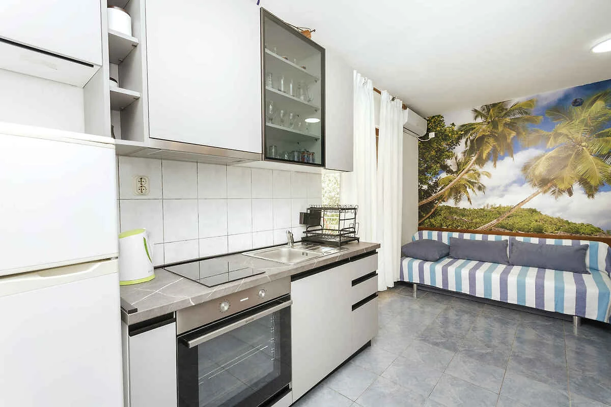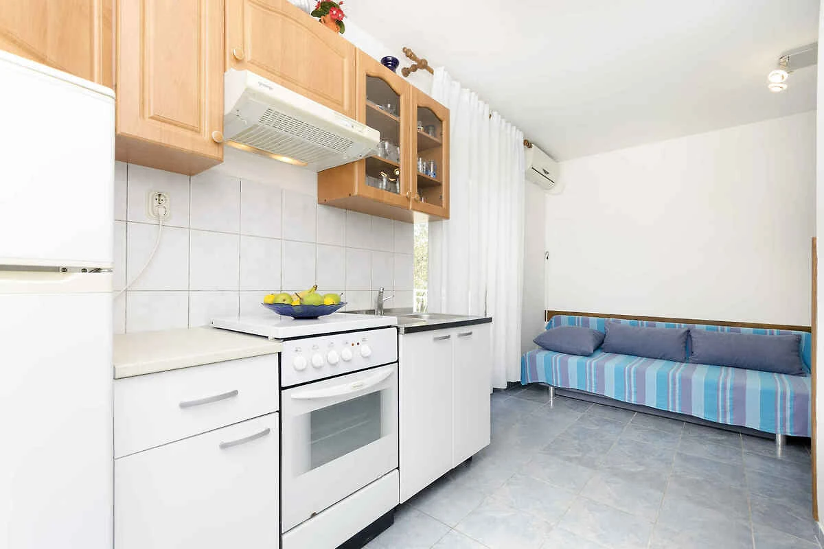 Srima. L' appartamento vacanze si trova in una trama del giardino grande 900 mq. Il padrone di casa vive solo temporaneamente nella casa, ma usa un ingresso separato. Vista: zona verde e giardino Parcheggio sulla proprietà.