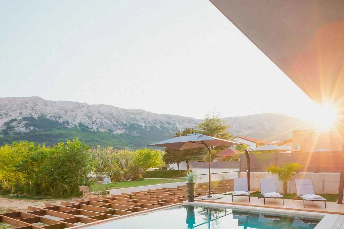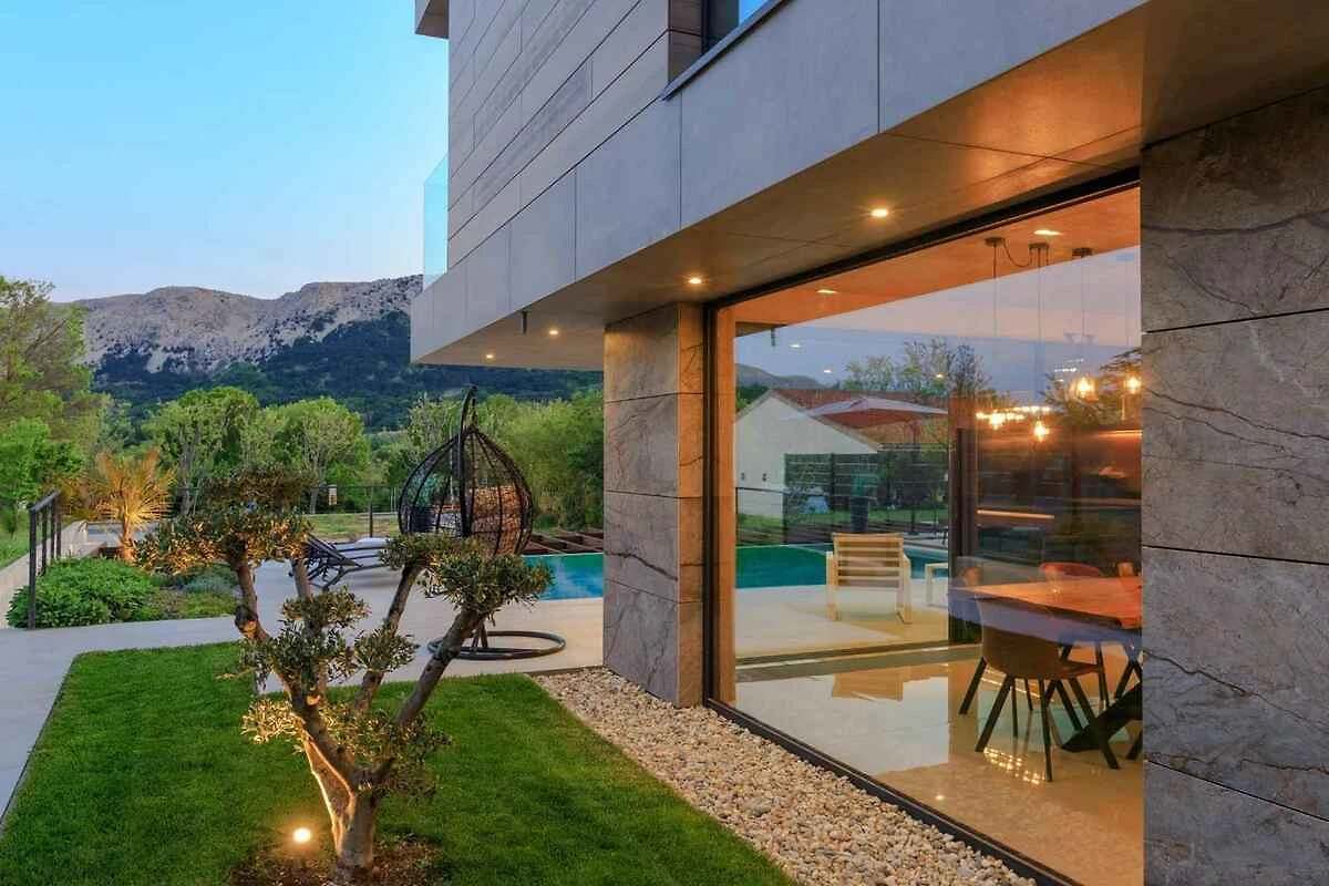 Baška. La villa si trova in una trama del giardino chiuso con prato e arbusti. Il proprietario non abita nella casa o nella proprietá. L'accesso avviene vicino a una strada secondaria. Parcheggio sulla proprietà.