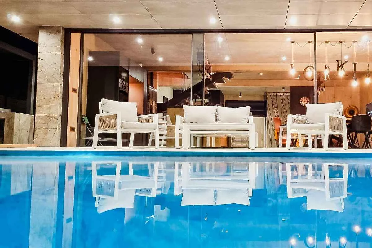 Tutte le piscine sono a vostra esclusiva disposizione. Piscina esterna (operativa tutto l’anno 5 m x 9 m).