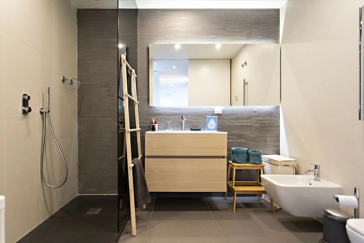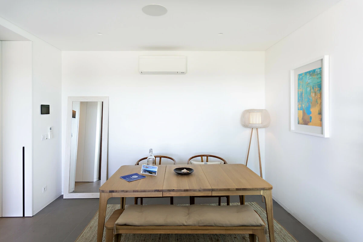 Alloggio di 66 m² arredato con gusto e nuova costruzione, con vista al mare e alla piscina.