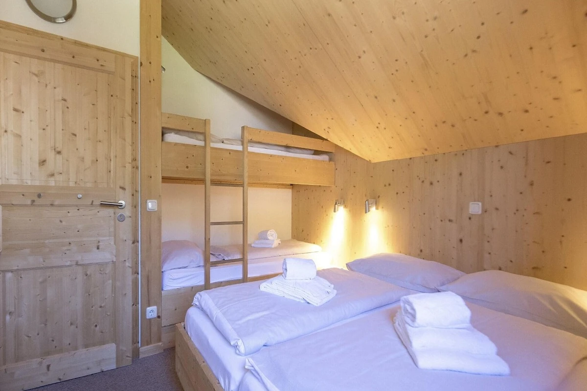 Lo chalet vanta quattro camere da letto arredate con gusto con letti matrimoniali e una camera da letto aggiuntiva con un letto matrimoniale e un letto a castello, garantendo ampio spazio per tutti. Con tre bagni moderni dotati di doccia o vasca idromassaggio interna (asciugacapelli in dotazione), praticità e comfort sono garantiti. Il punto forte di questa proprietà di lusso include una rilassante vasca idromassaggio, una vasca idromassaggio interna e una sauna, che offrono il massimo relax dopo una giornata sulle piste o alla scoperta degli splendidi dintorni.