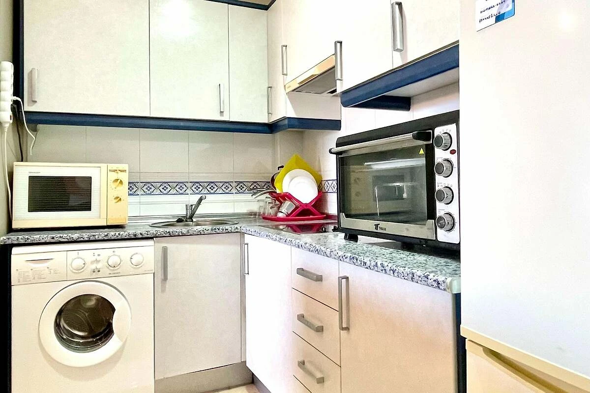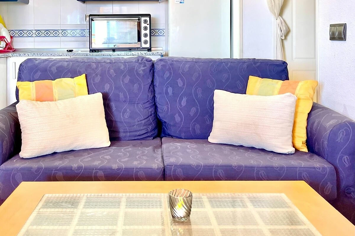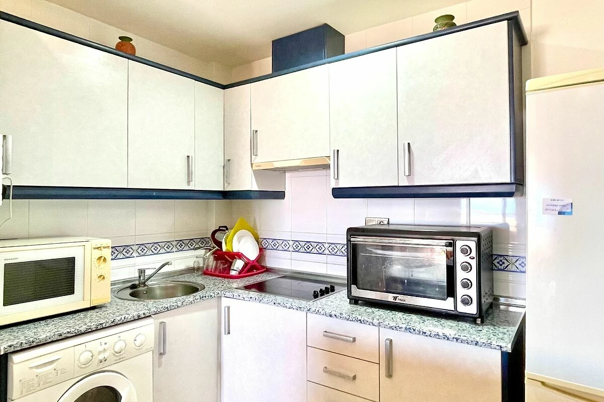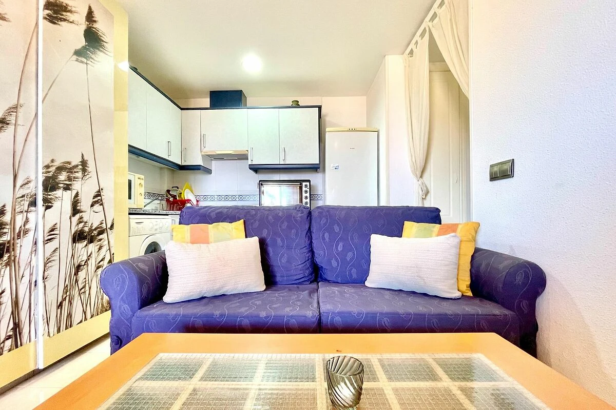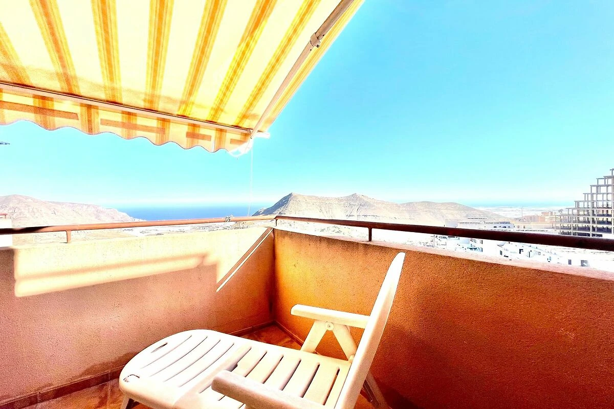 Benvenuti nel vostro rifugio ideale per due nella splendida La Envía! Questo grazioso appartamento all'ottavo piano offre tutto il necessario per una fuga rilassante. Accessibile tramite un comodo ascensore dal piano terra, l'appartamento dispone di un accogliente soggiorno dotato di un divano letto matrimoniale, una zona pranzo, una TV e una comoda area salotto, perfetta per rilassarsi dopo una giornata di esplorazione. Uscite sulla vostra terrazza privata, dove potrete prendere il sole sulle sedie a sdraio mentre vi godete una vista mozzafiato. Per un ulteriore relax, salite al nono piano, dove troverete un'area relax in comune con vasca idromassaggio e solarium, ideale per rilassarvi con stile.