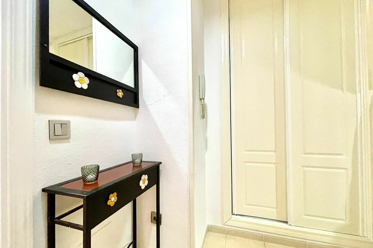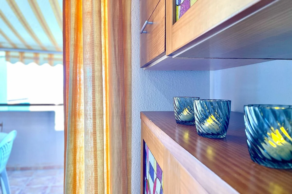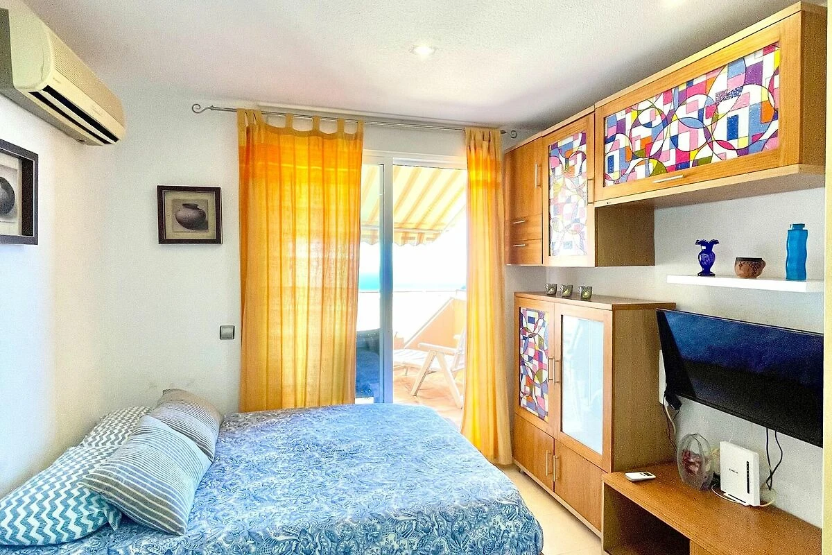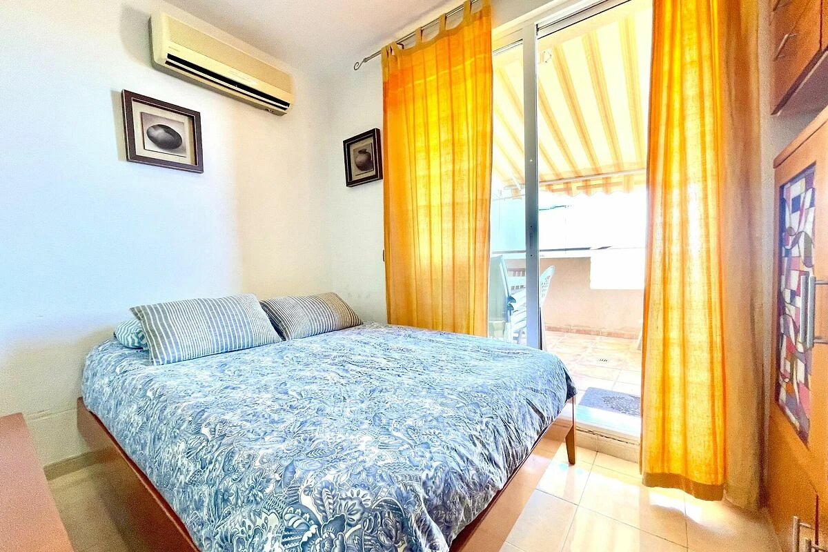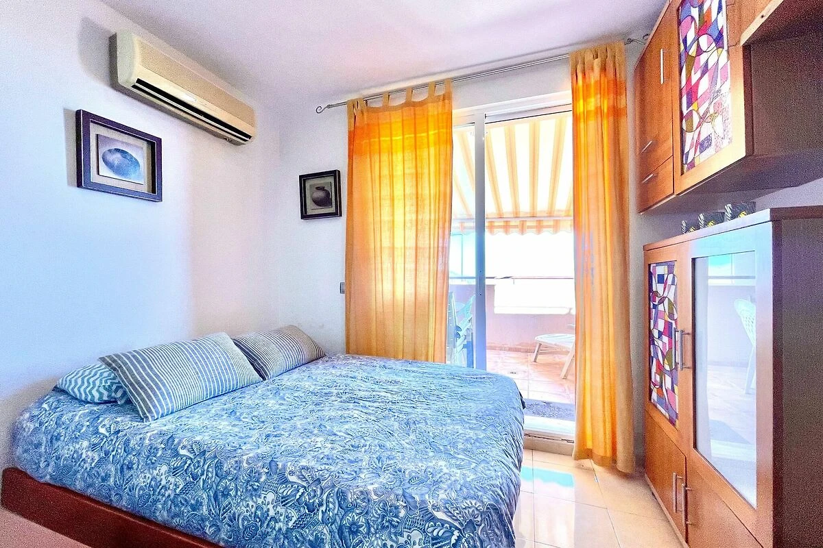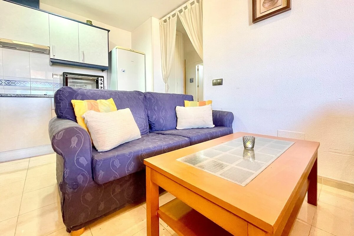 Benvenuti nel vostro rifugio ideale per due nella splendida La Envía! Questo grazioso appartamento all'ottavo piano offre tutto il necessario per una fuga rilassante. Accessibile tramite un comodo ascensore dal piano terra, l'appartamento dispone di un accogliente soggiorno dotato di un divano letto matrimoniale, una zona pranzo, una TV e una comoda area salotto, perfetta per rilassarsi dopo una giornata di esplorazione. Uscite sulla vostra terrazza privata, dove potrete prendere il sole sulle sedie a sdraio mentre vi godete una vista mozzafiato. Per un ulteriore relax, salite al nono piano, dove troverete un'area relax in comune con vasca idromassaggio e solarium, ideale per rilassarvi con stile.