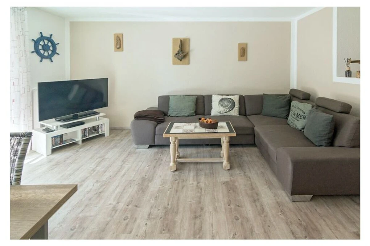 Il divano angolare estraibile con funzione letto invita a rilassarsi, comodi posti a sedere per 4 persone, TV a schermo piatto (TV satellitare con ricezione gratuita di programmi HD +) con una dimensione di 48 pollici e un lettore BlueRay con DVD e BlueRay fanno anche una serata davanti alla TV è stata un'esperienza. Qui sono disponibili anche un sistema musicale con docking station per iPod e vari libri.