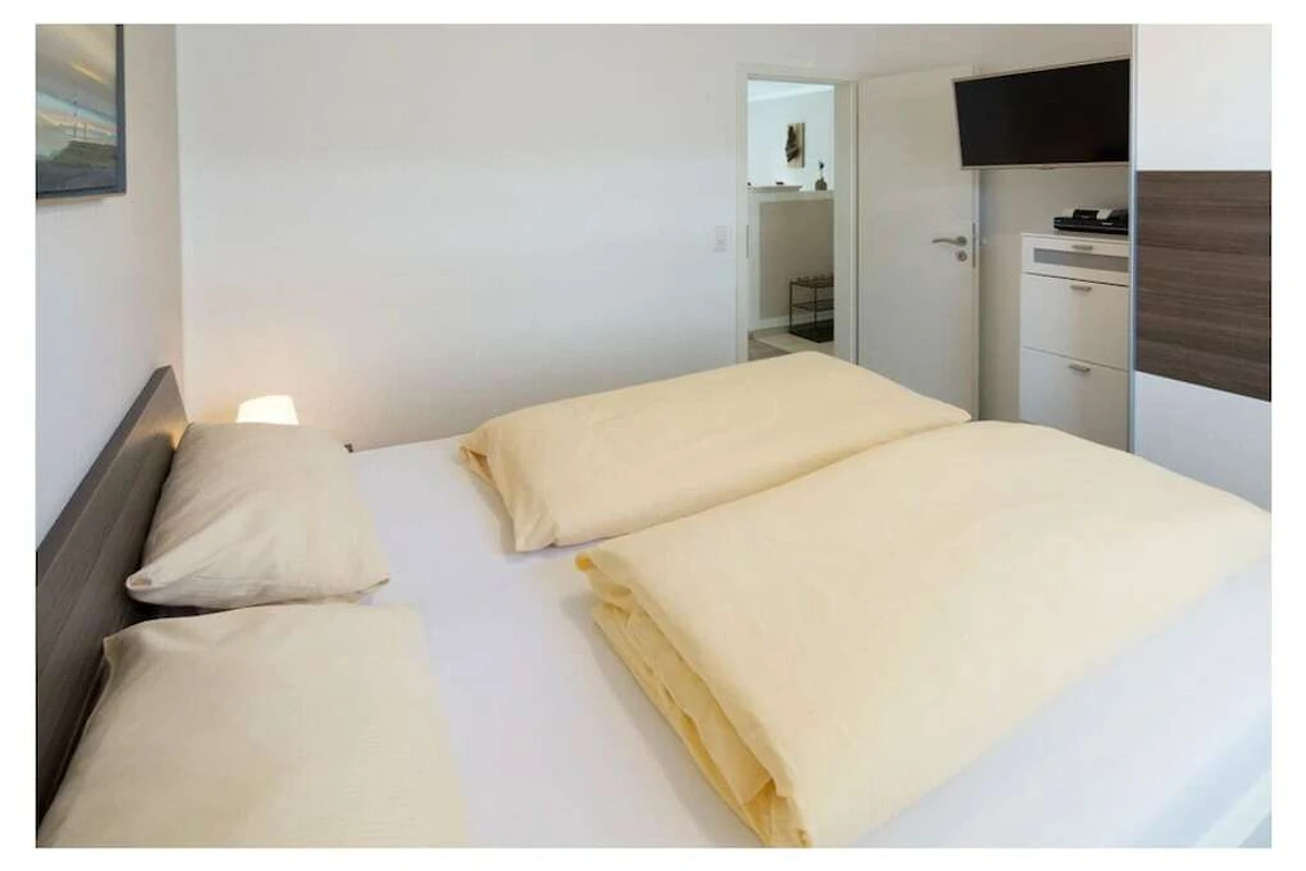 Divano letto nel soggiorno, 1 camera da letto con la possibilità di dormire per 2 persone in un letto matrimoniale, qui c'è anche una nuova TV LED, che è integrata con un lettore BluRay e la radiosveglia è obbligatoria.