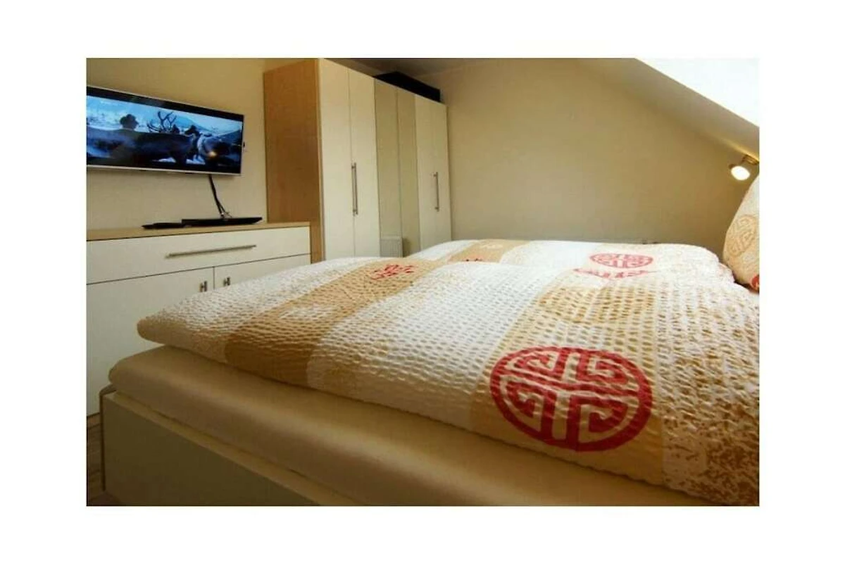 Due camere da letto offrono spazio per un totale di quattro persone. Una camera da letto è dotata di un letto matrimoniale, l'altra di due letti singoli, che a scelta possono essere uniti per formare un letto matrimoniale. Ci sarebbe anche spazio per un lettino da viaggio, se necessario. Entrambe le camere sono inoltre dotate di TV a schermo piatto, un lusso speciale di questo appartamento.